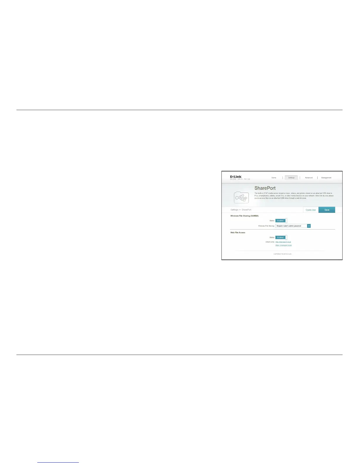 To manage user accounts for SharePort access, click Create User and refer to the next page for details.