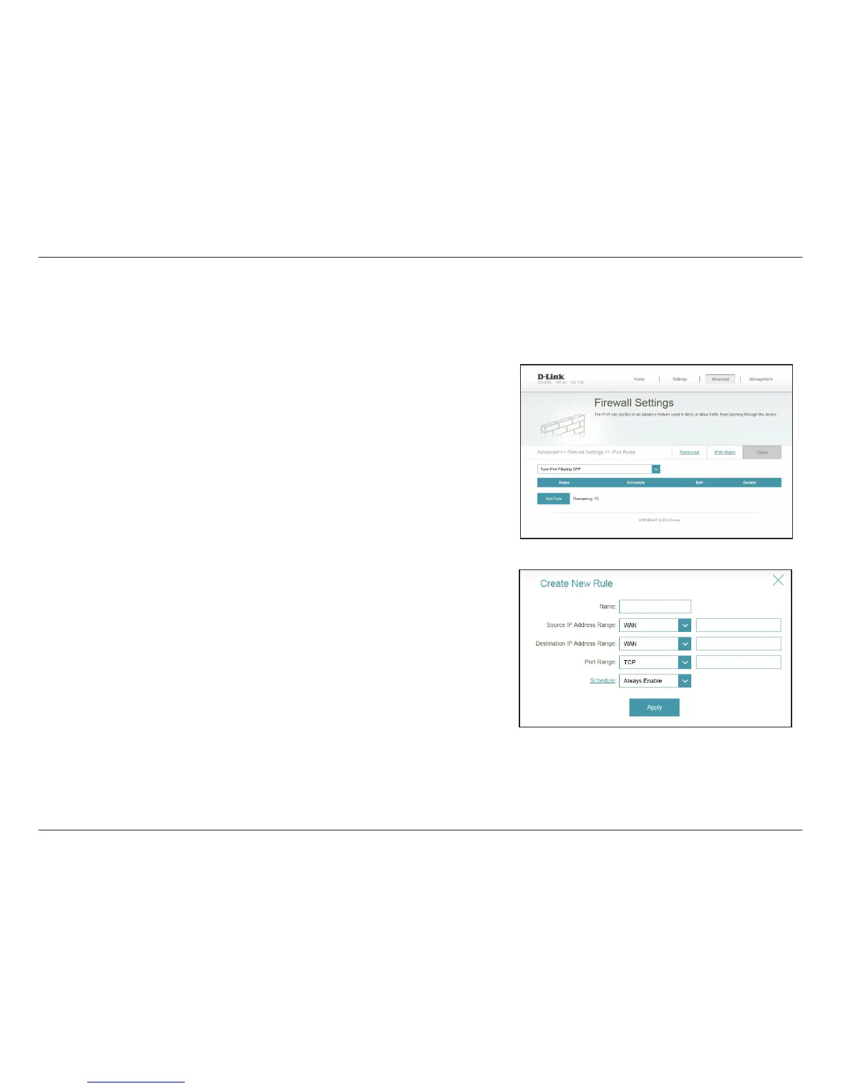 the IPv4 rules, from the Firewall Settings page click IPv4 Rules. To congure IPv6 rules, from the Firewall Settings page click IPv6 Rules. To return