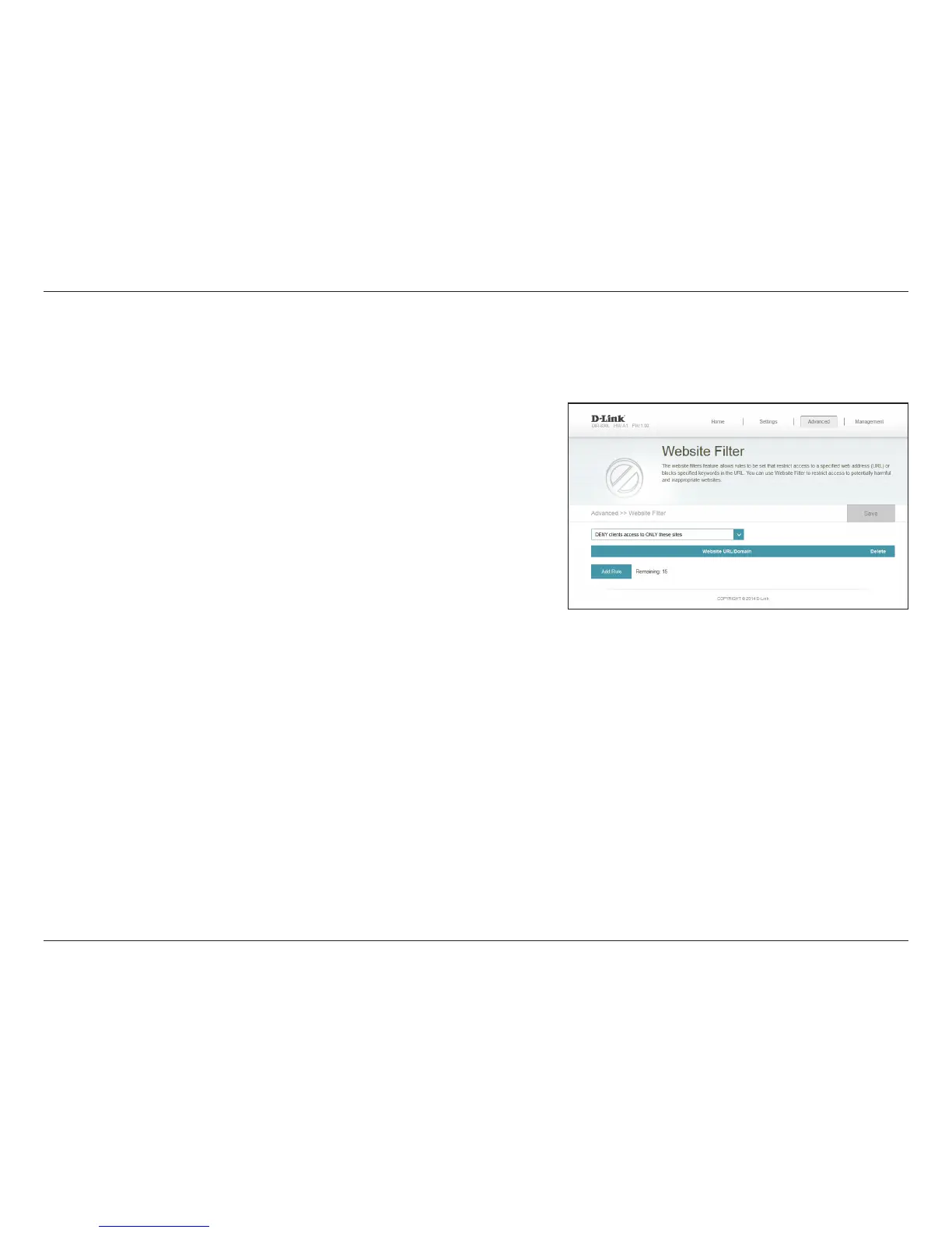 The website lter settings allow you to block access to certain websites. You can either create a list of sites to block, or create a list of sites to allow