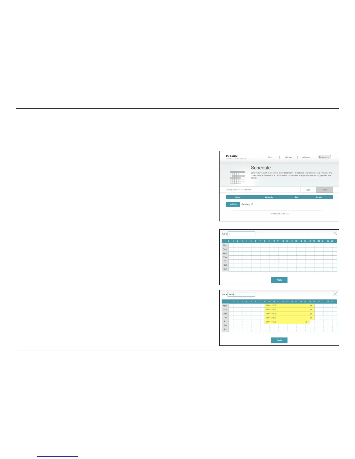 Some conguration rules can be set according to a pre-congured schedule. To create, edit, or delete schedules, from the Time page click Schedule.