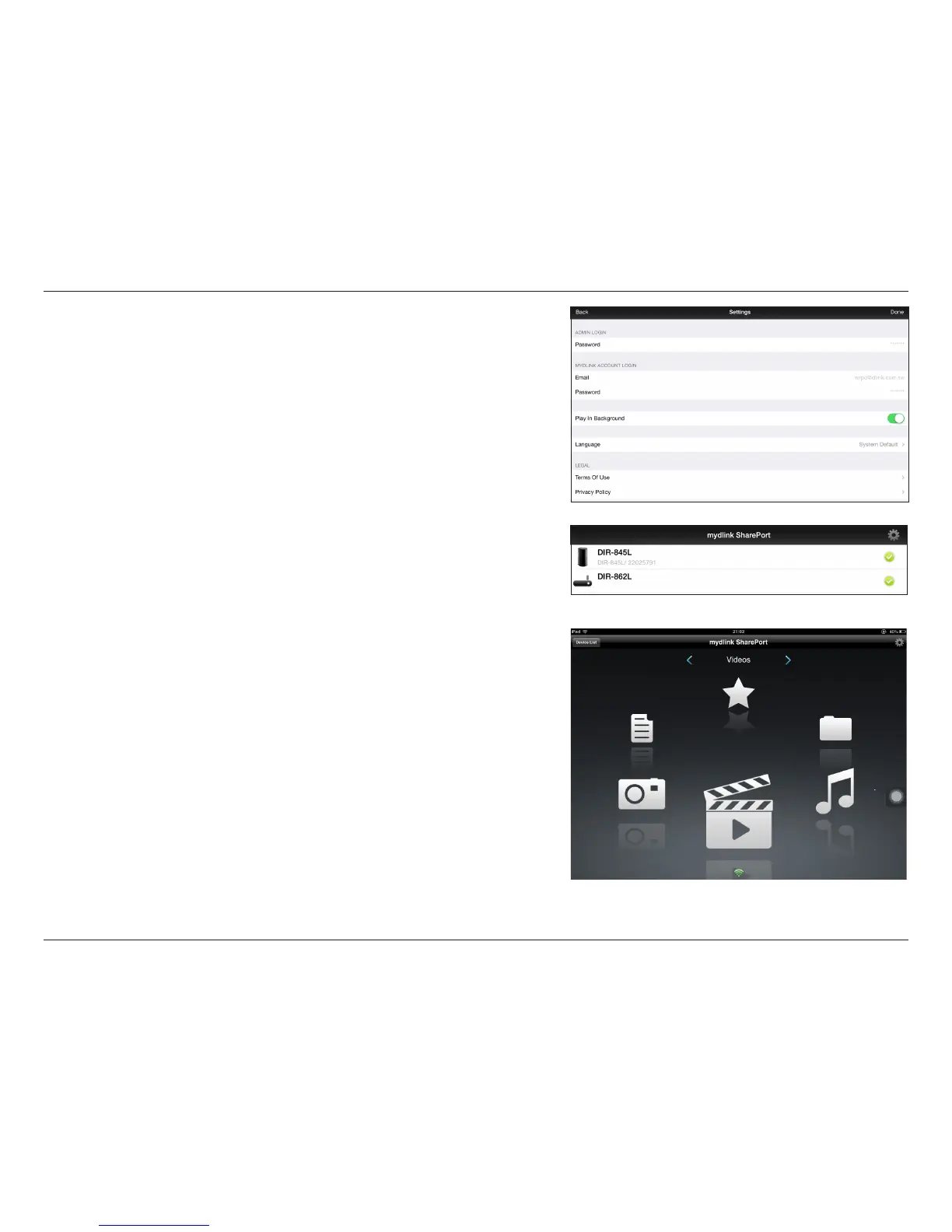 7. You can now use the mydlink SharePort app interface to stream media