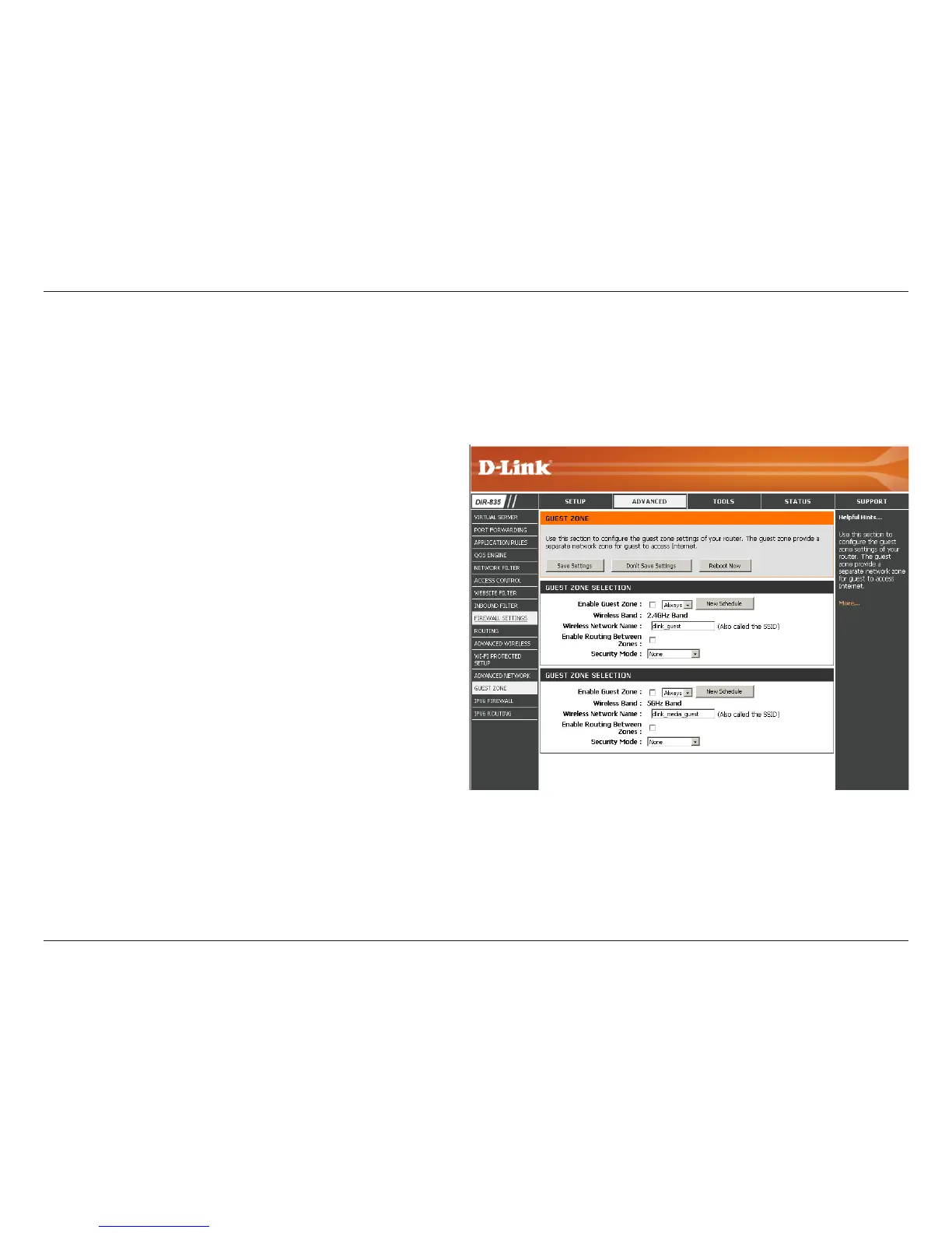zones will be separate from your main wireless network. You may congure dierent zones for the 2.4GHz and 5.0GHz wireless