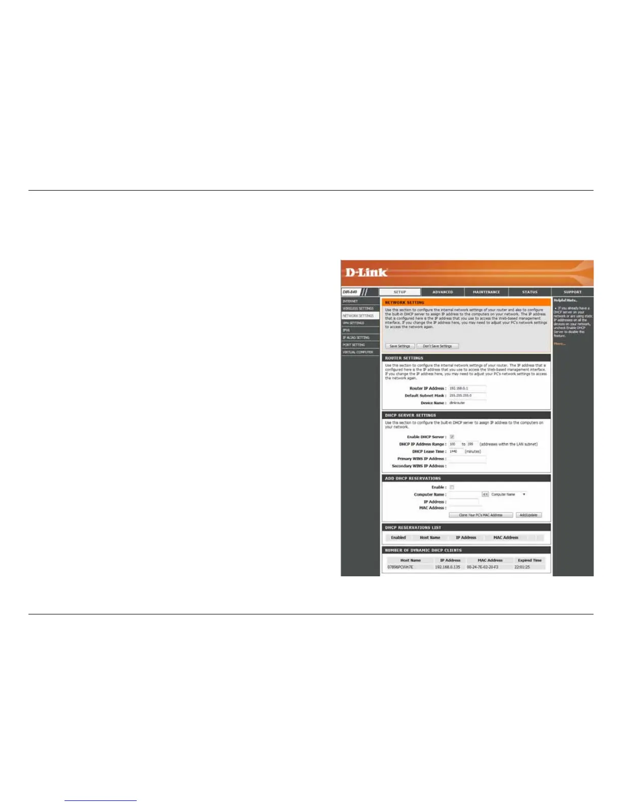 This section will allow you to change the local network settings of the router and to congure the DHCP settings.