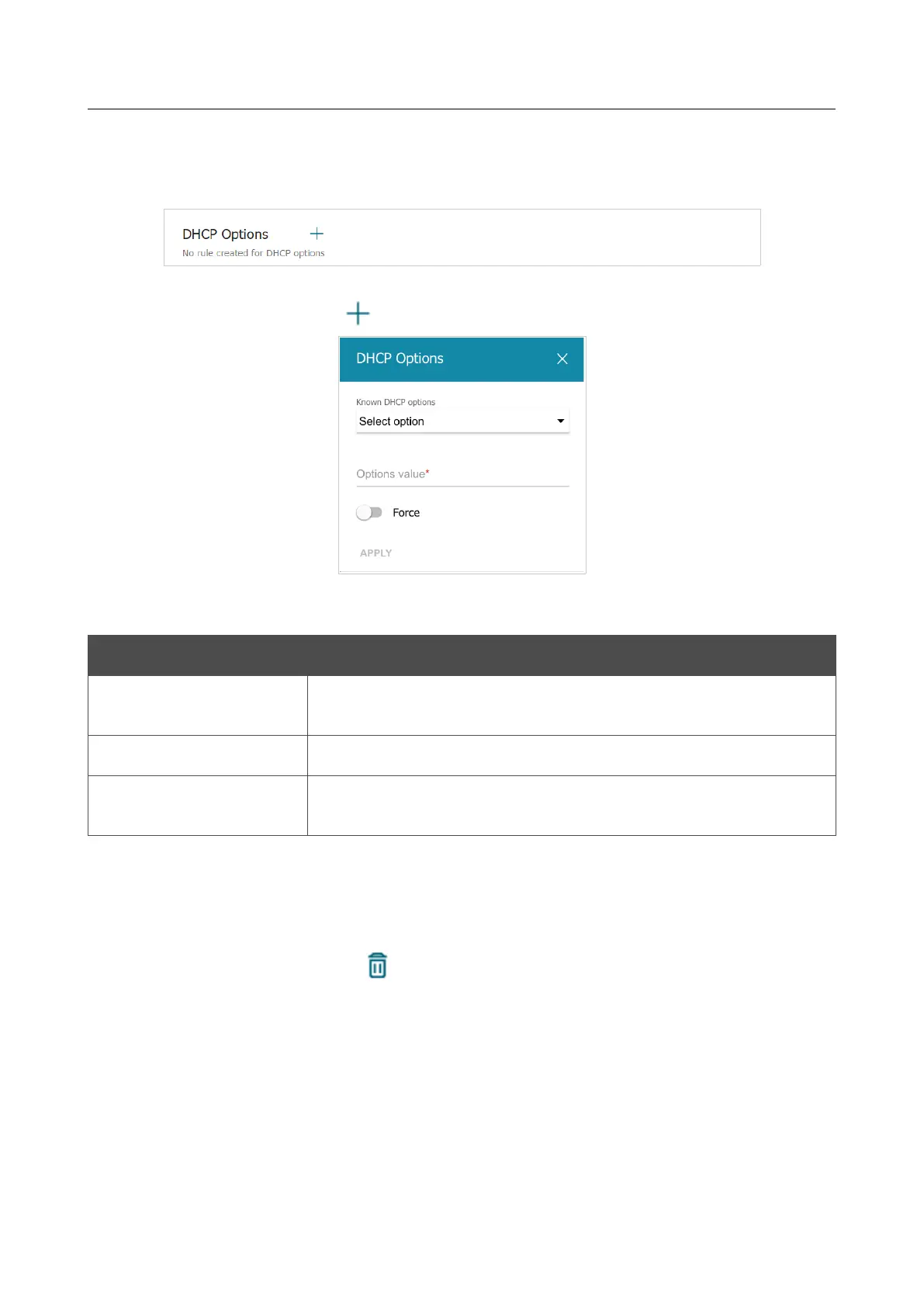 In the DHCP Options section, you can change default values for some options of DHCP protocol