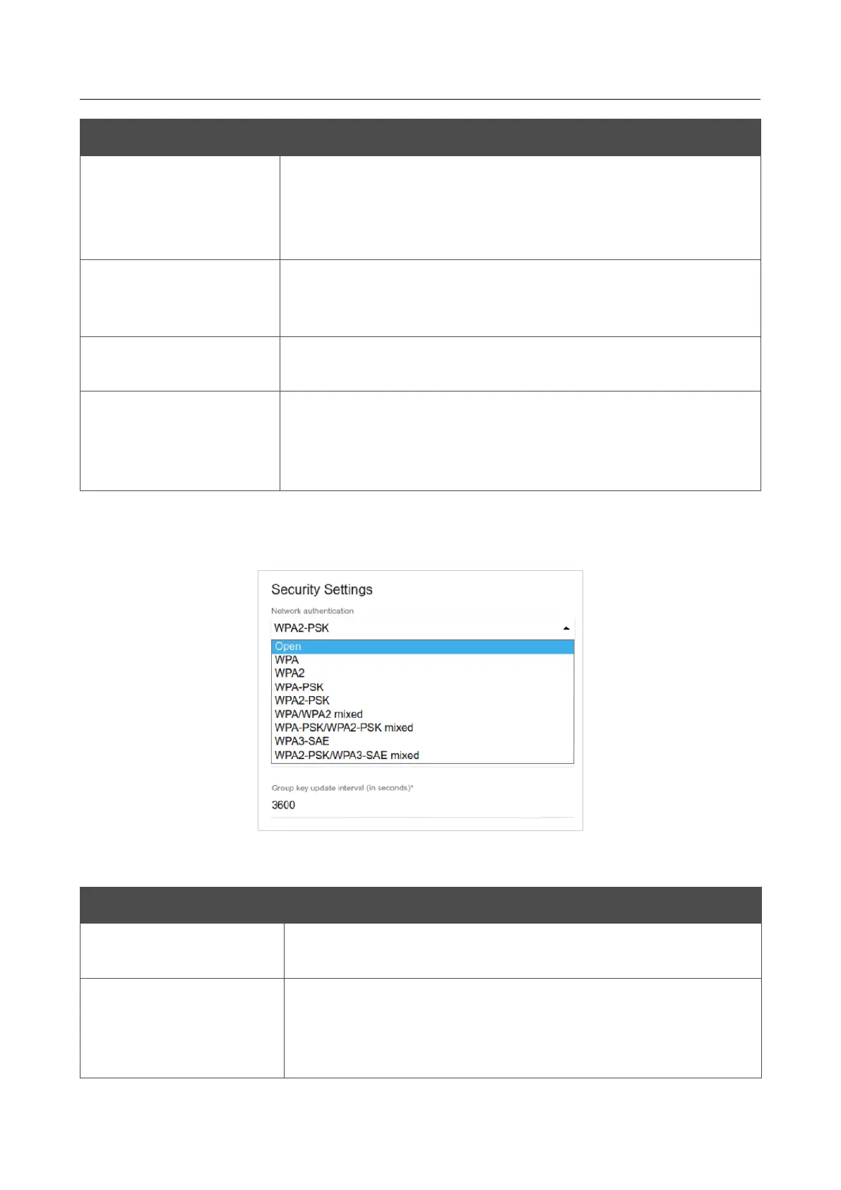 Figure 90. Network authentication types supported by the router.