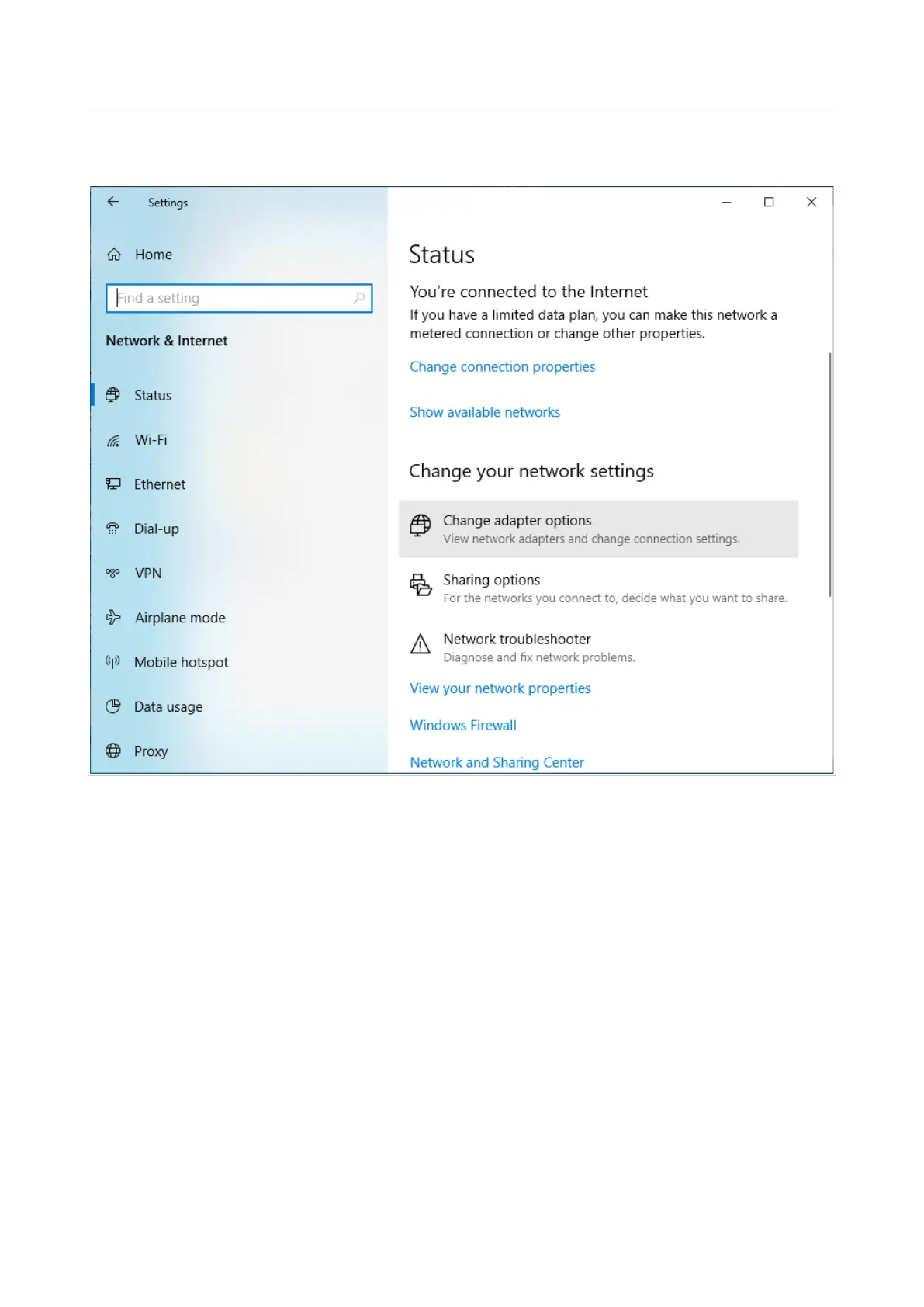 3. In the Change your network settings section, select the Change adapter options