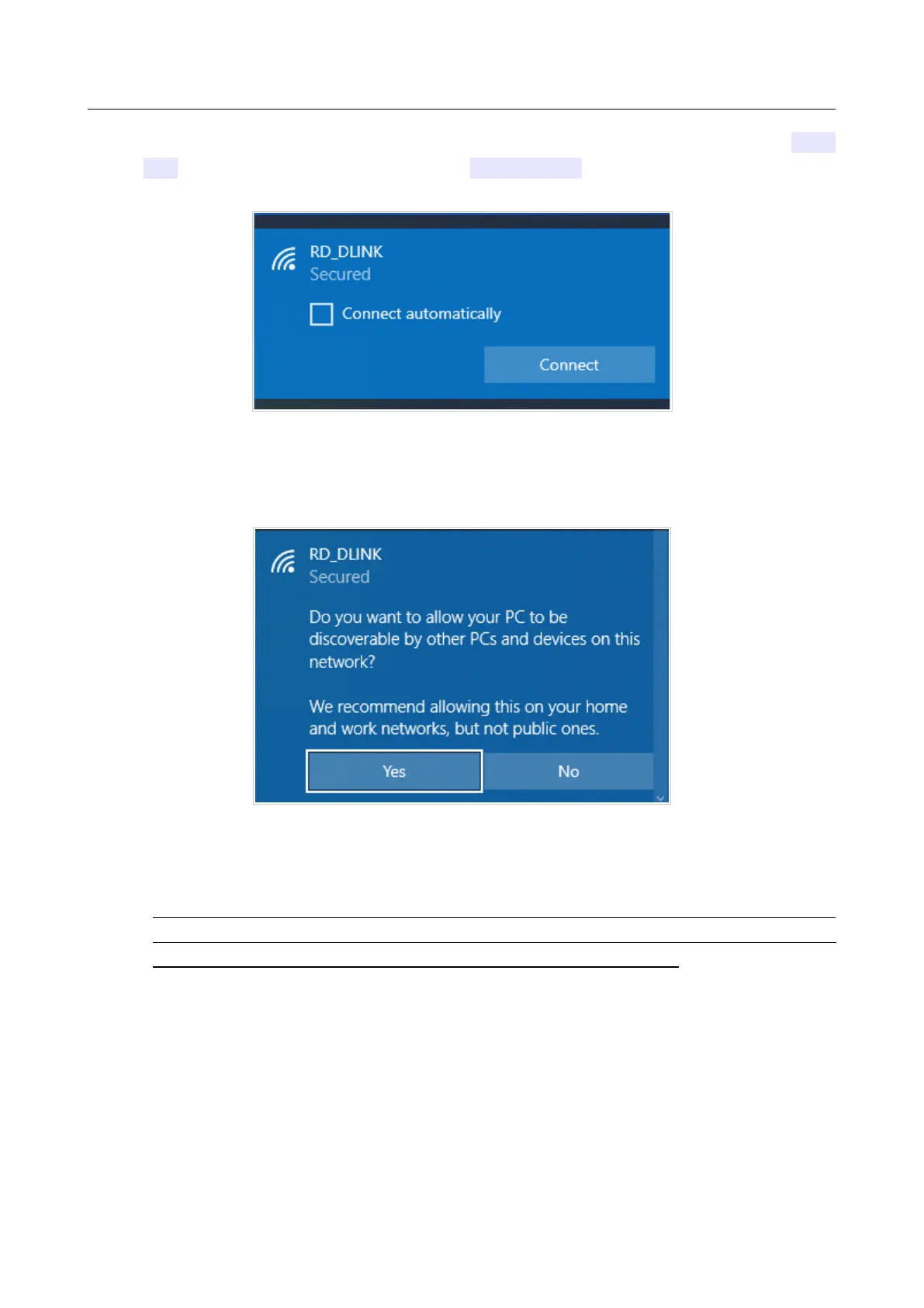 11. Allow or forbid your PC to be discoverable by other devices on this network (Yes / No).