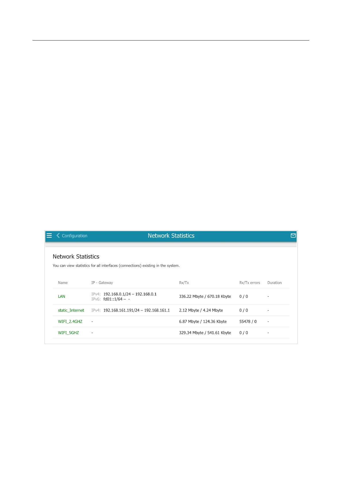 Figure 55. The Statistics / Network Statistics page.