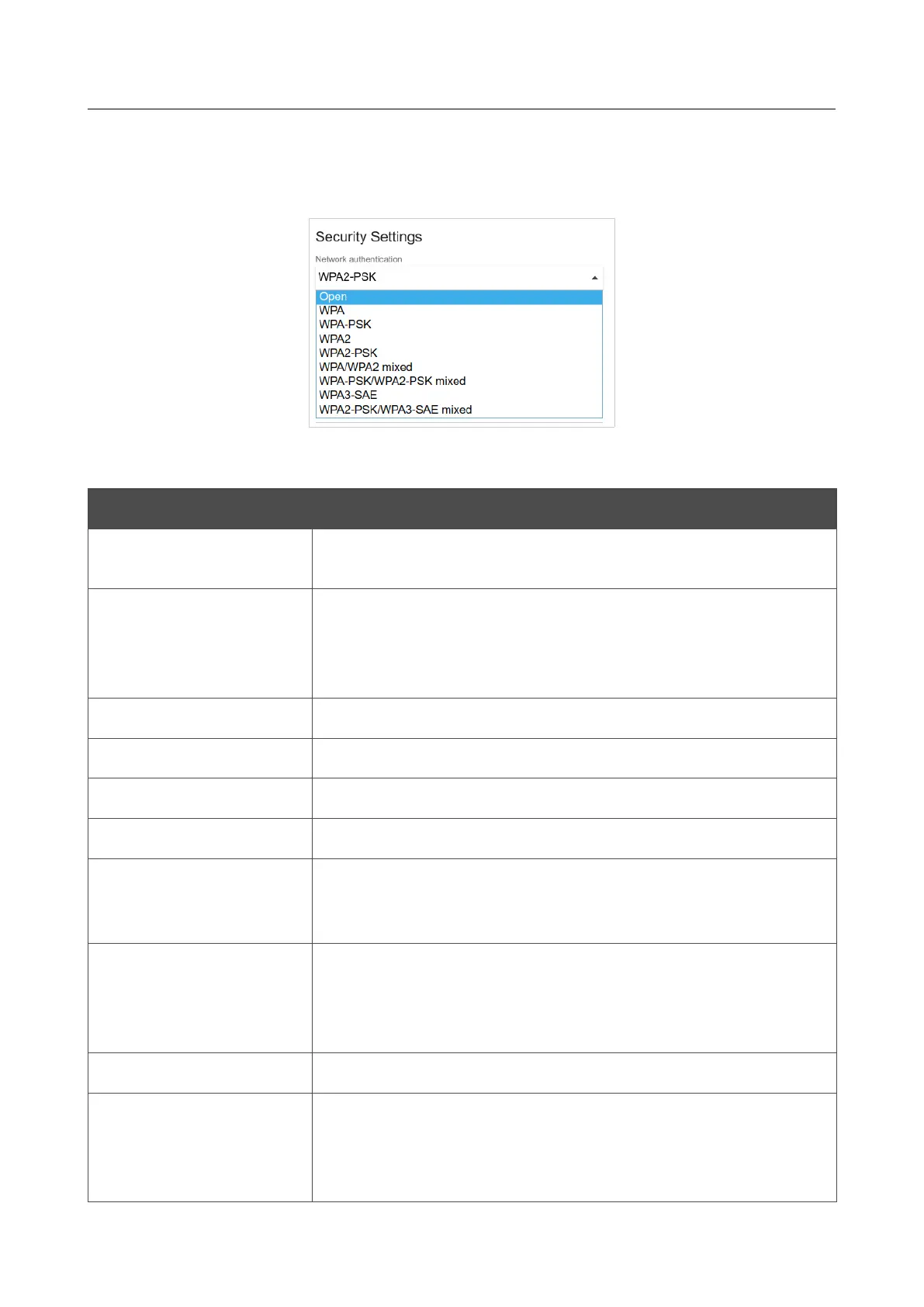 WPA3-SAE WPA3-based authentication using a PSK and SAE method.