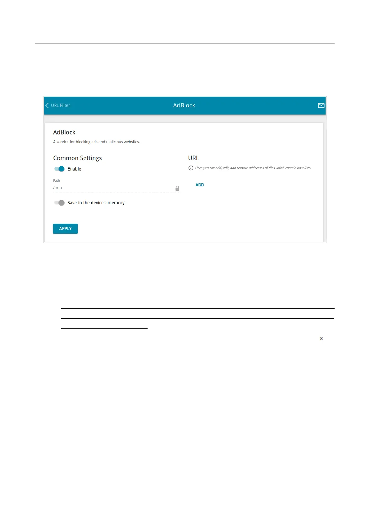 If you don't want to use a file for blocking advertisements any longer, click the Delete icon ( ) in