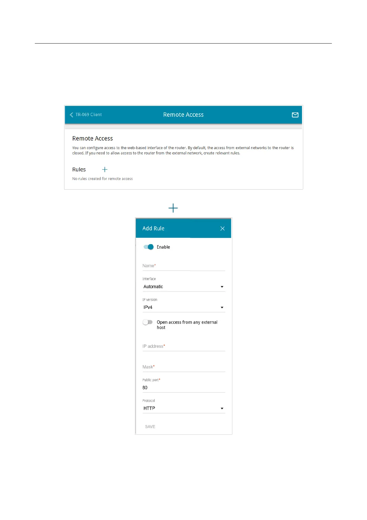 of the router. By default, the access from external networks to the router is closed. If you need to