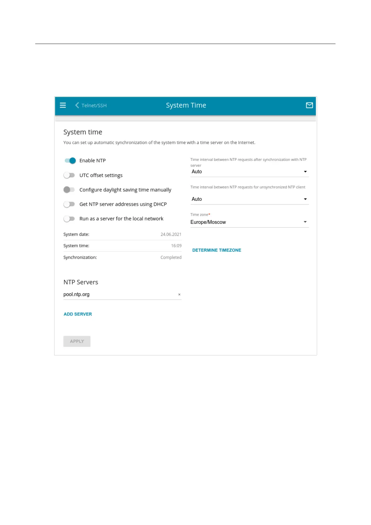 3. Click the APPLY button. The System date and System time fields will be filled in