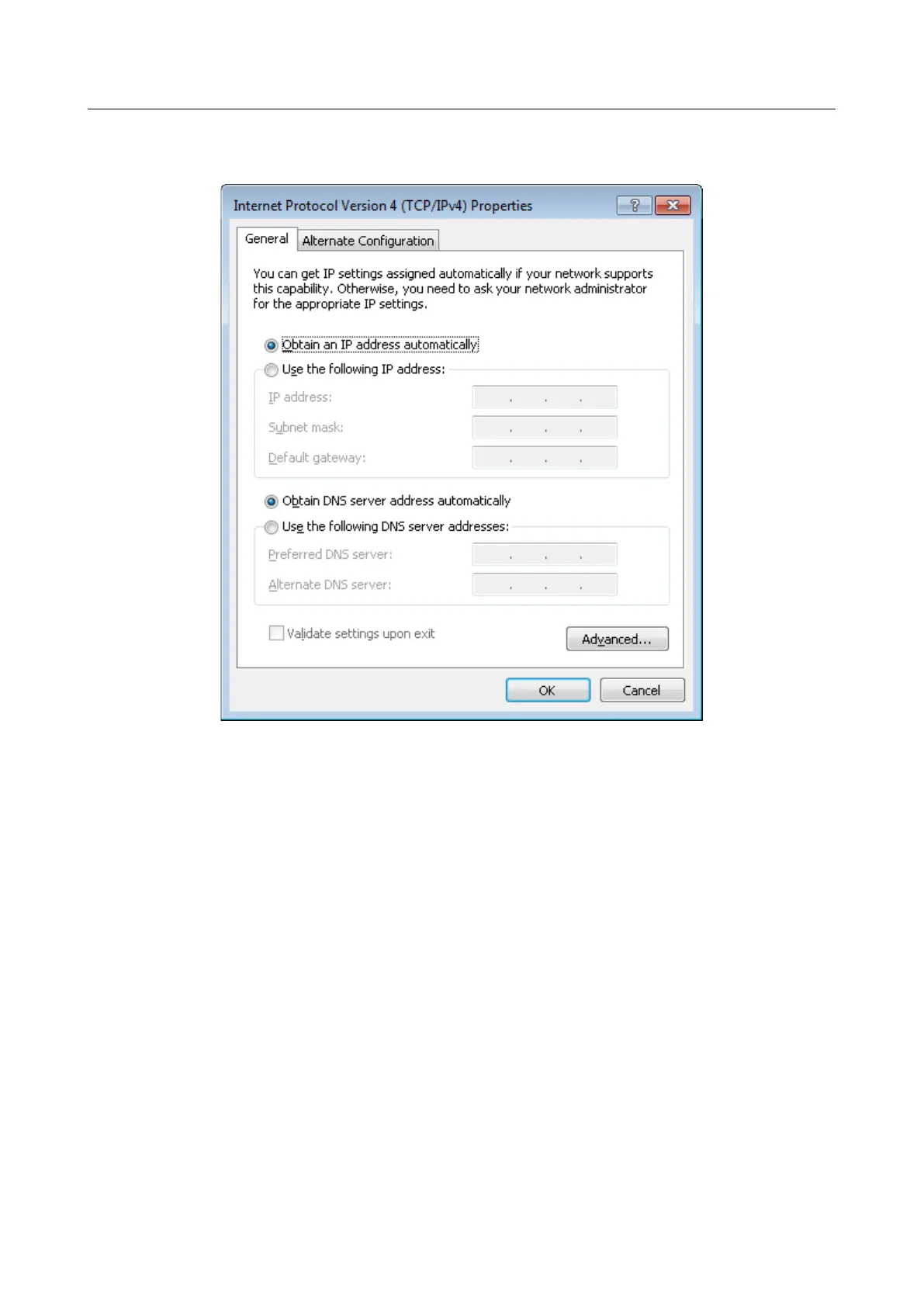 Figure 7. The Internet Protocol Version 4 (TCP/IPv4) Properties window.