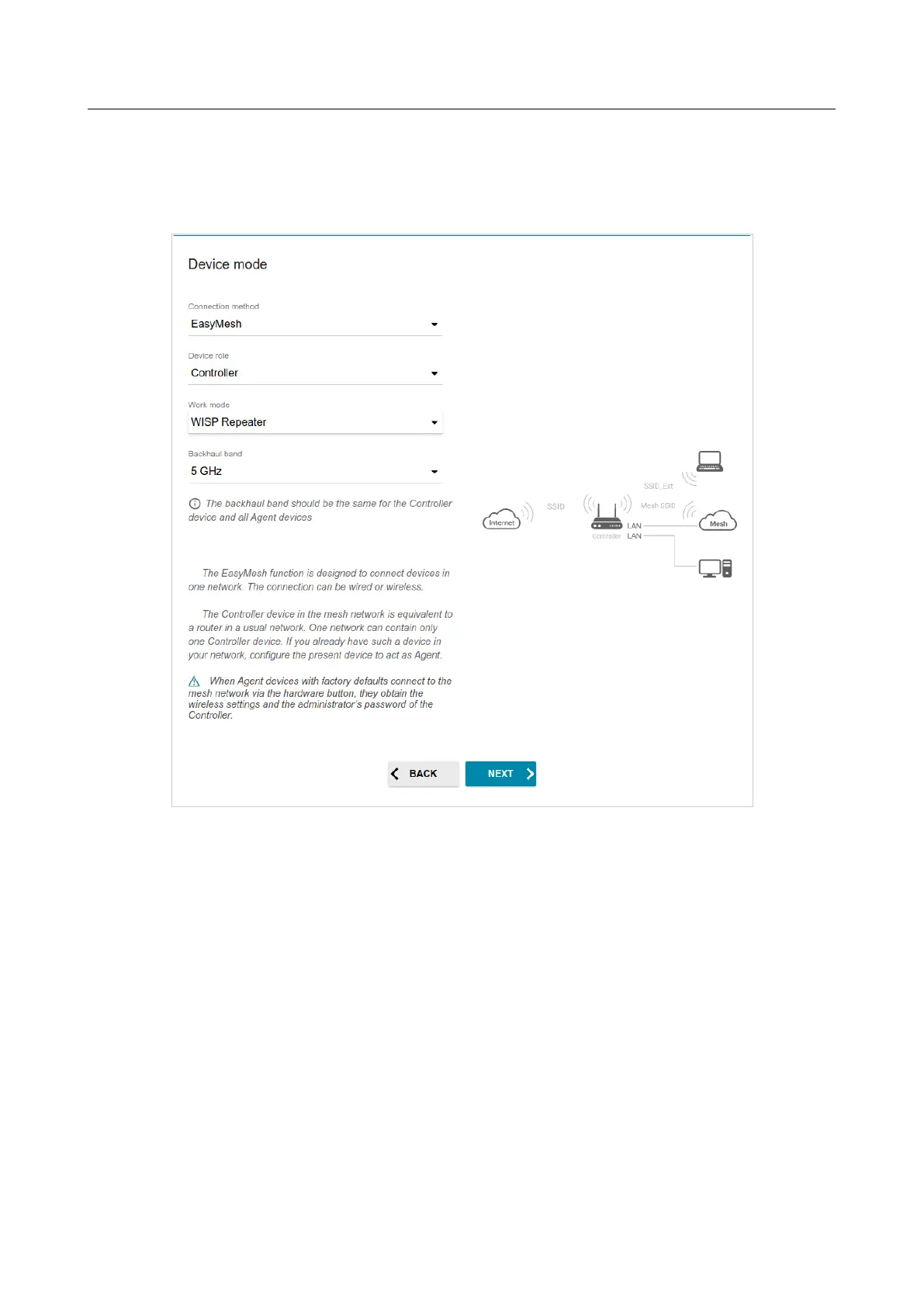Figure 39. Configuring the EasyMesh function for a main device. The WISP Repeater mode.