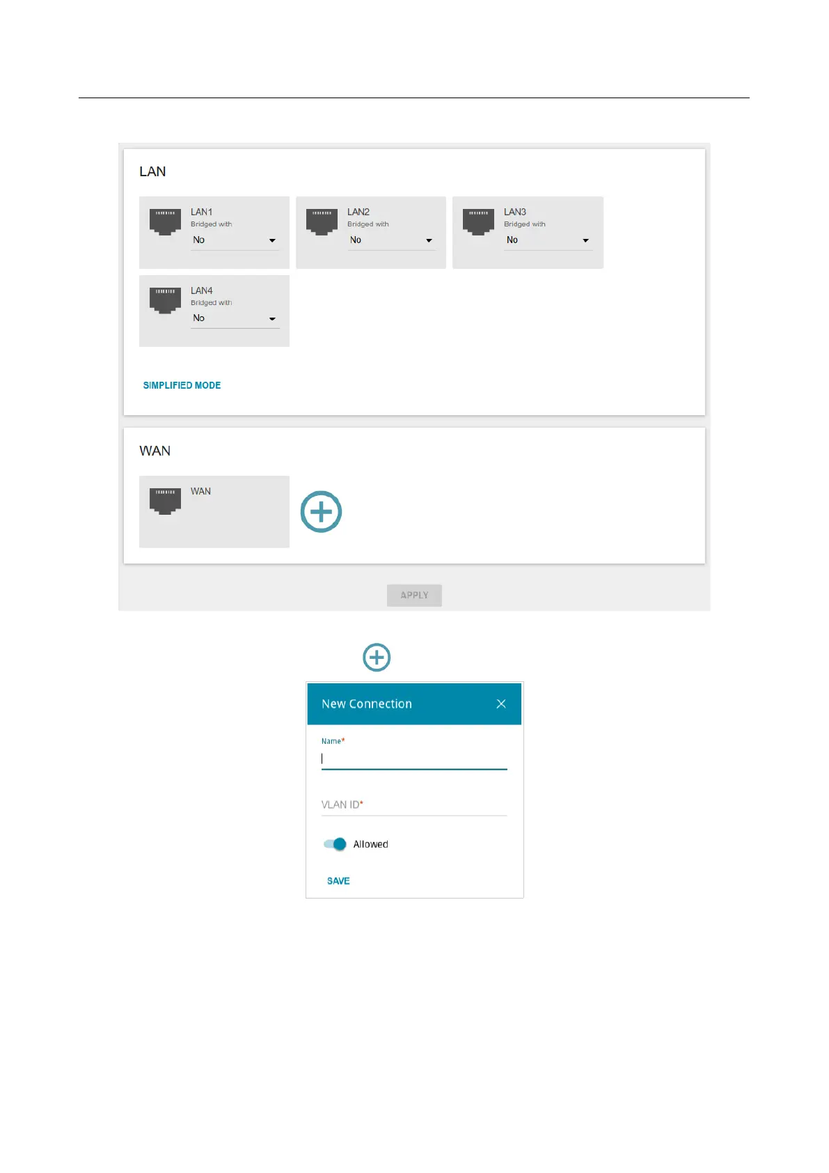 In the WAN section, click the Add icon ( ).