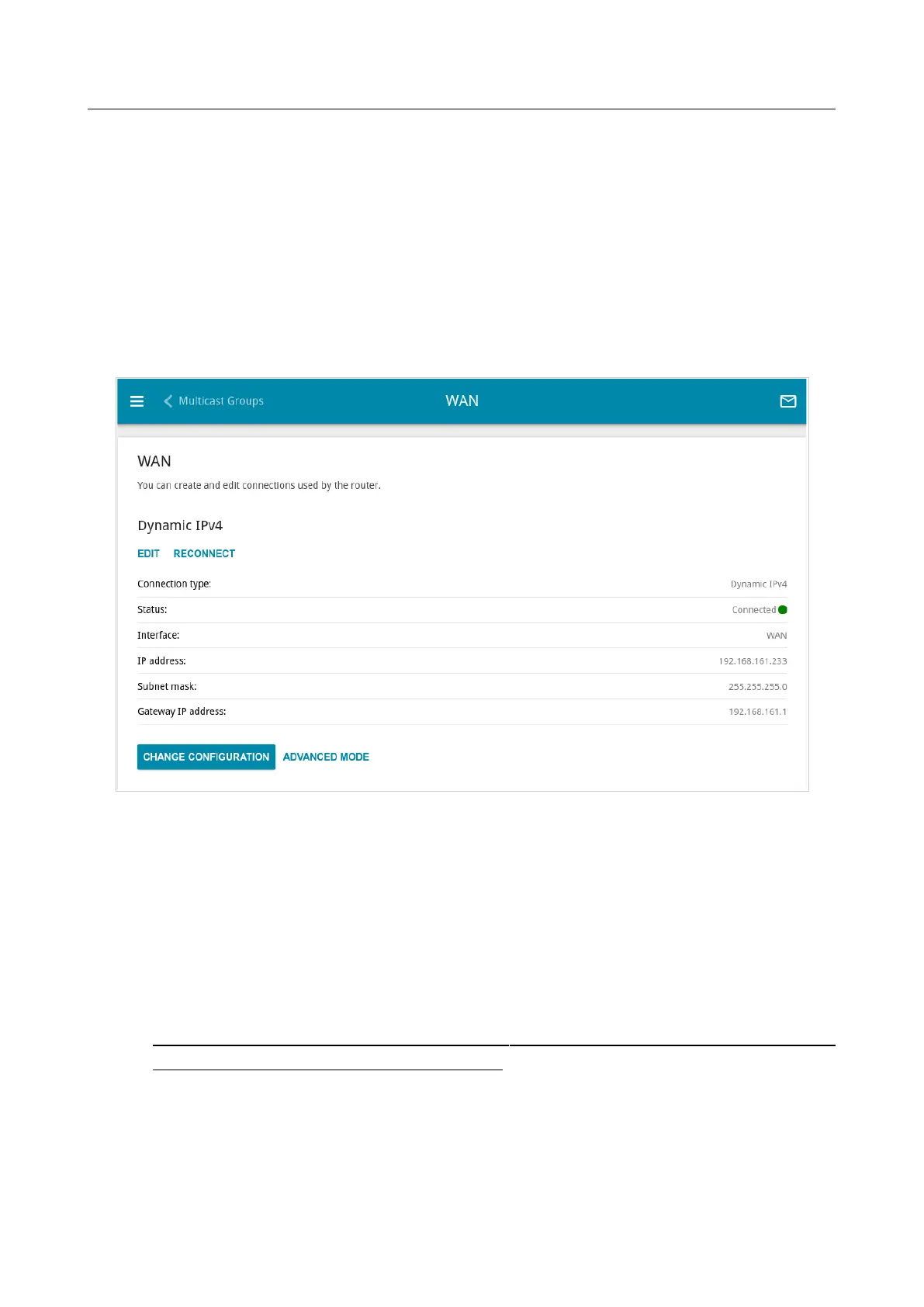 Figure 66. The Connections Setup / WAN page. The simplified mode.