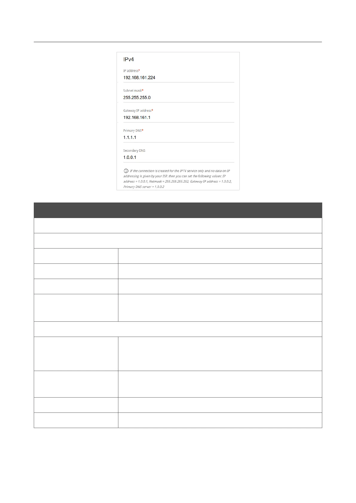 Figure 70. The page for creating a new Static IPv4 connection. The IPv4 section.