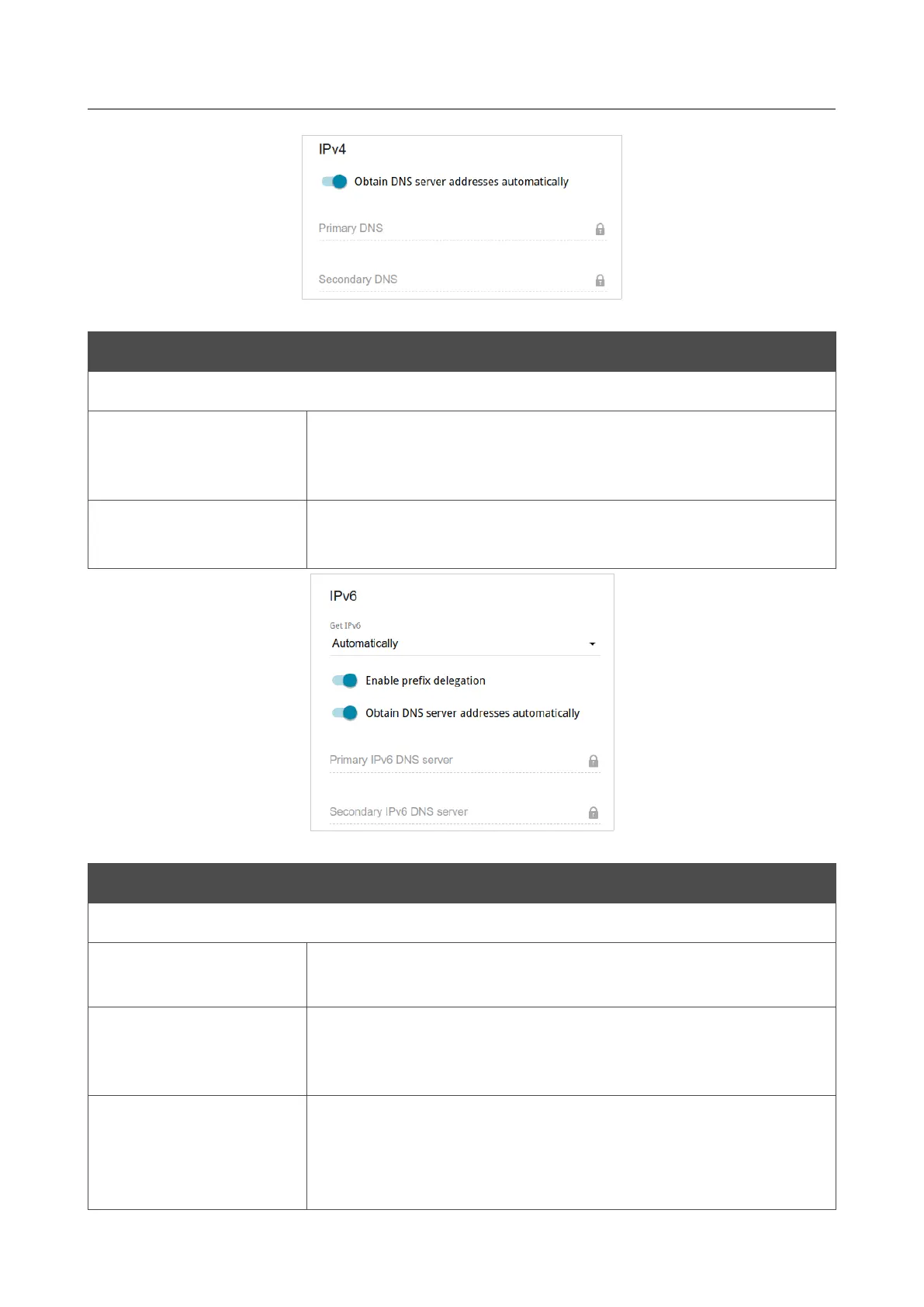 server and Secondary IPv6 DNS server fields are not available