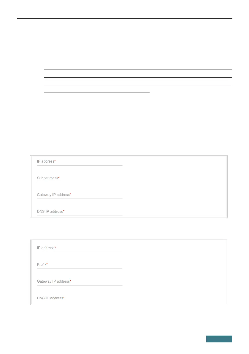 Static IPv6: Fill in the following fields: IP address, Prefix, Gateway IP