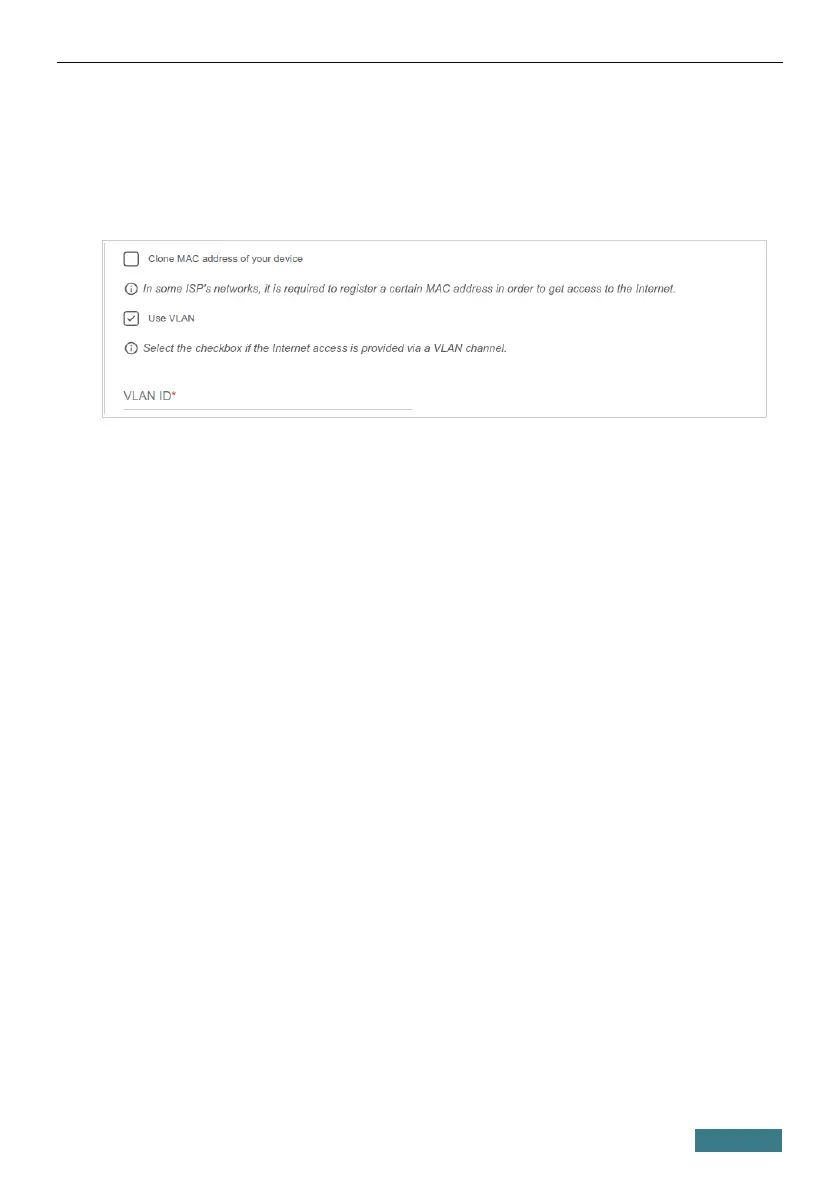 3. If the Internet access is provided via a VLAN channel, select the Use