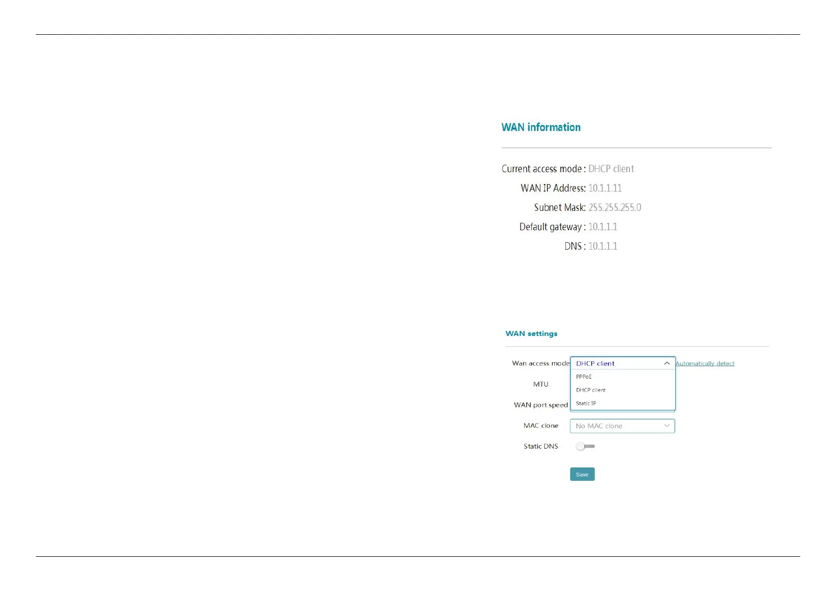 D-Link DIR-846 - WAN Information; WAN Settings