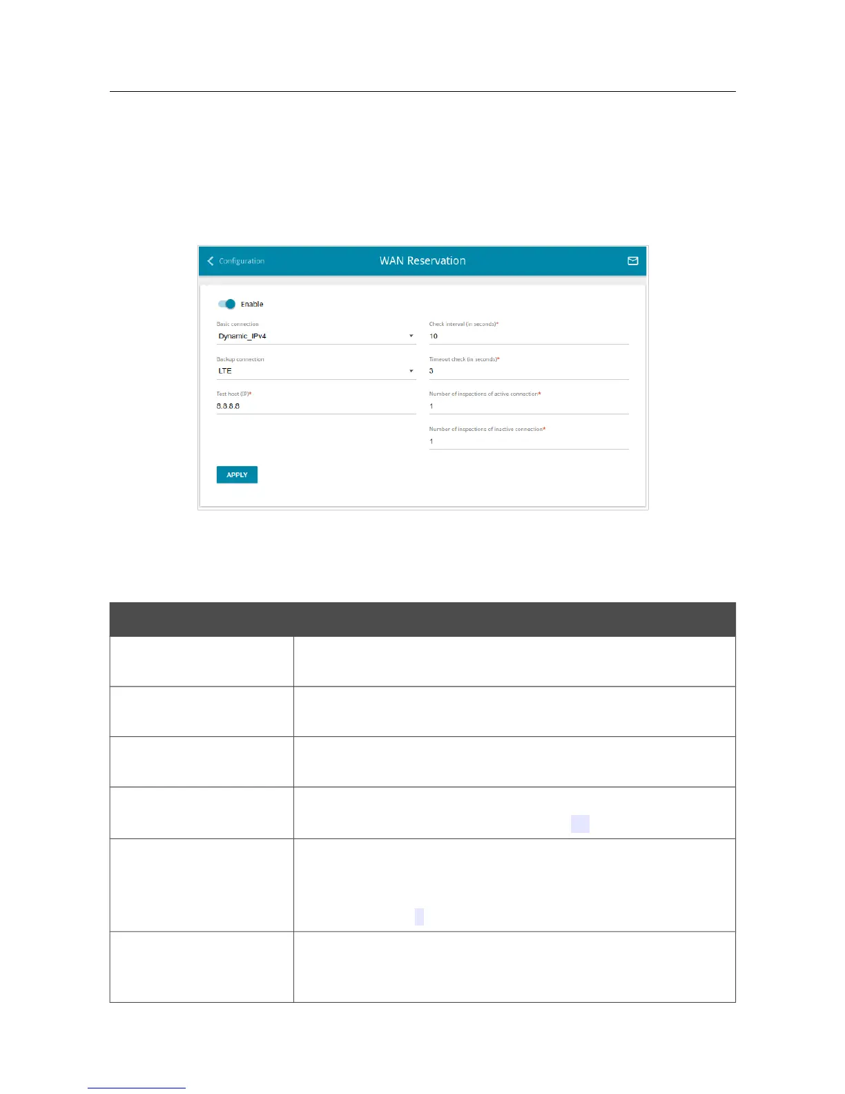 On the Connections Setup / WAN Reservation page, you can enable the WAN backup