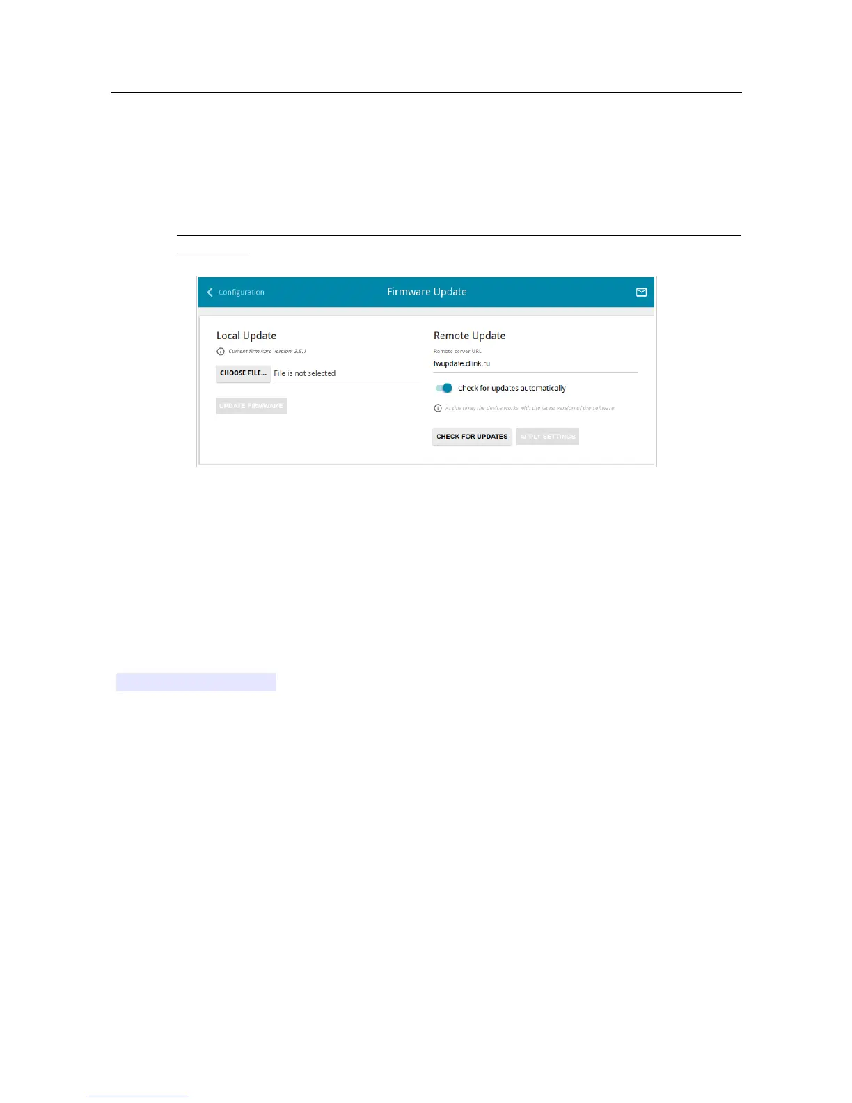 To enable the automatic check for firmware updates, in the Remote Update section, move the