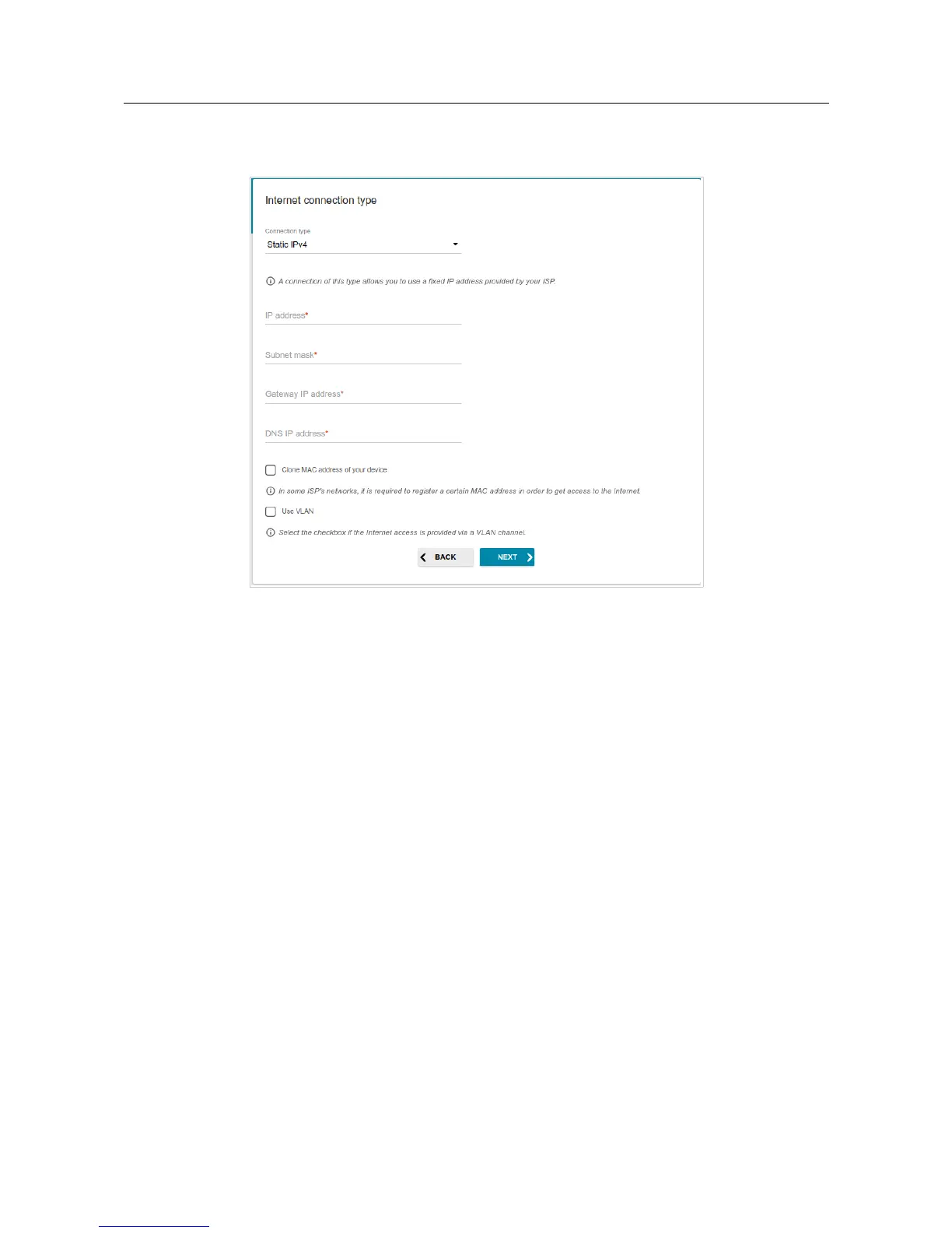 Figure 33. The page for configuring Static IPv4 WAN connection.