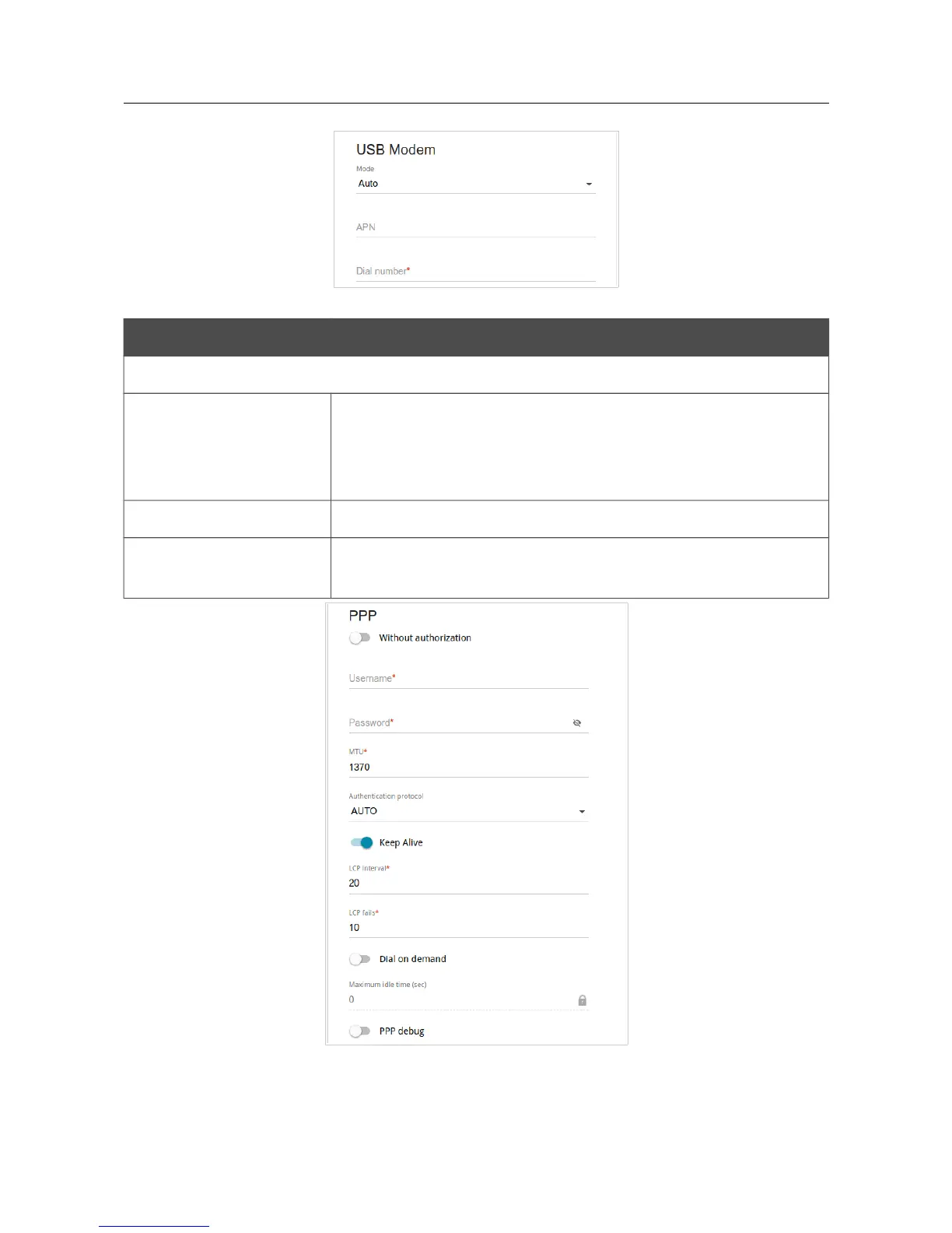 Figure 78. The page for creating a new 3G connection. The PPP section.