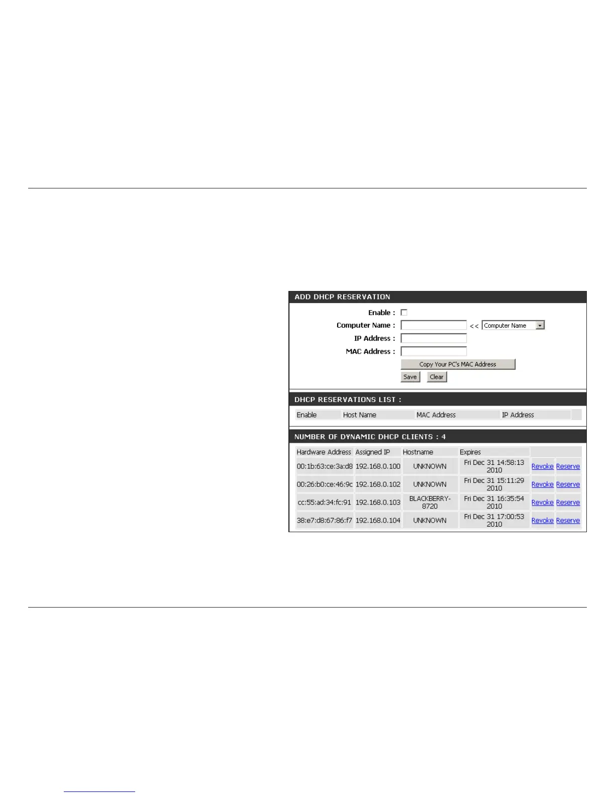 Click Revoke to cancel the lease for a specic LAN device and free