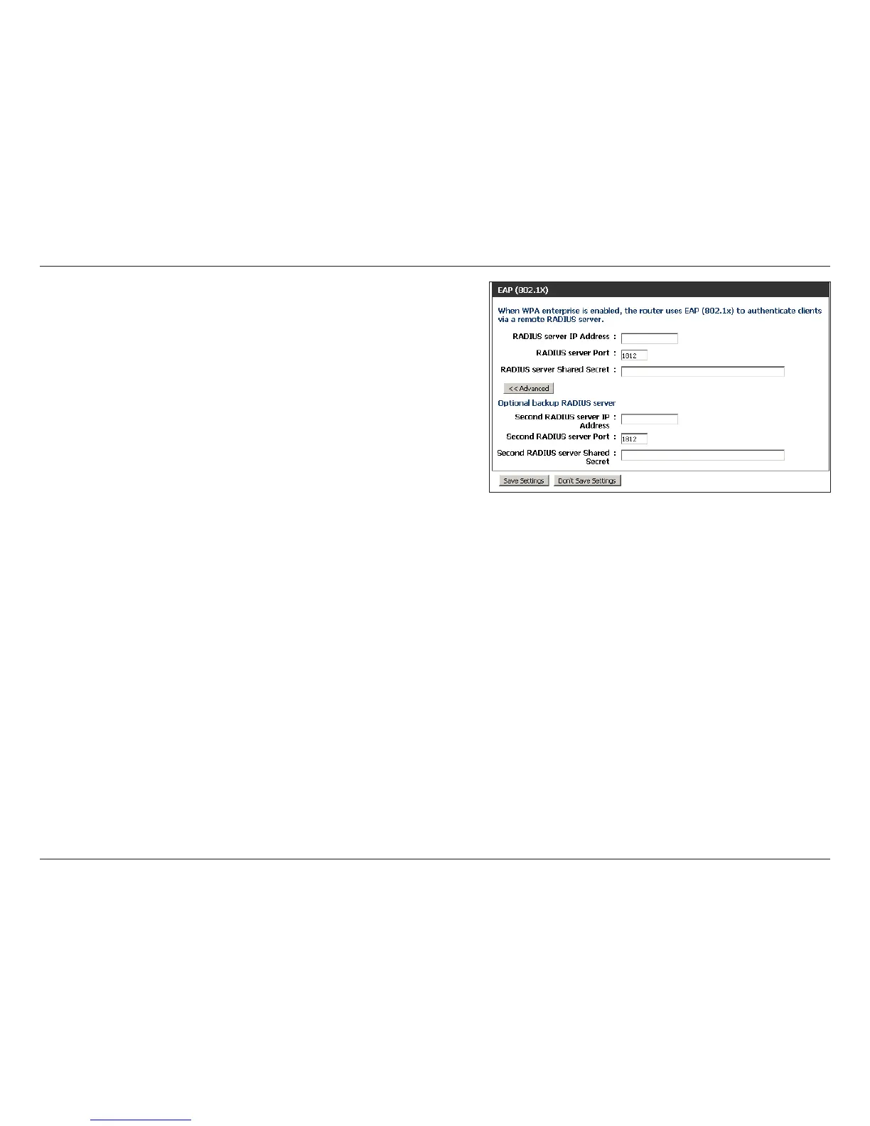 9. Click Advanced to enter settings for a secondary RADIUS Server.