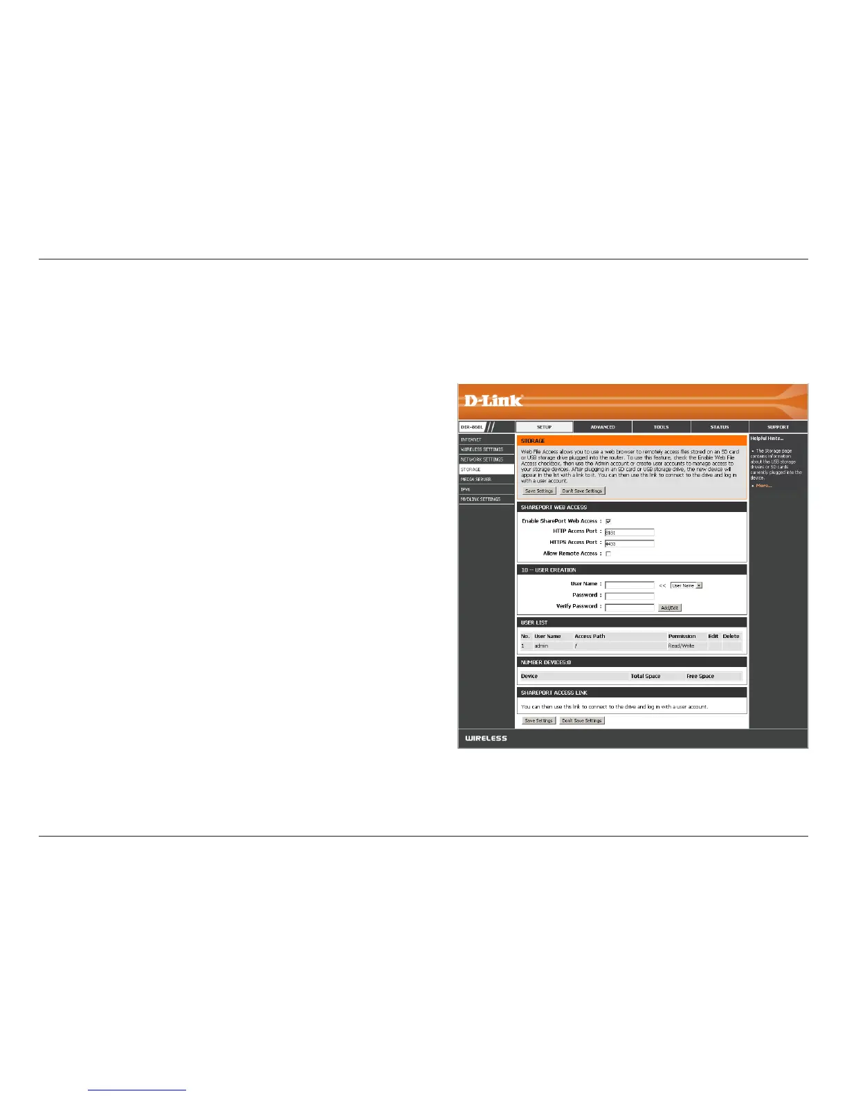 This page will allow you to access les from a USB external hard drive or thumb drive that is plugged into the router from your
