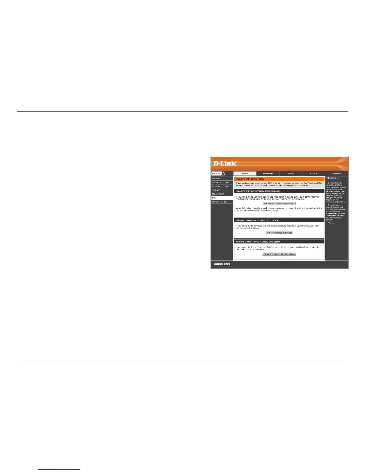 On this page, the user can congure the IPv6 Connection type. There are three ways to set up the IPv6 Internet connection.