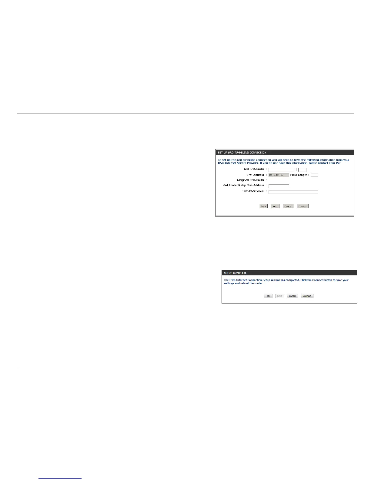 After selecting the Tunneling Connection (6rd) option, the user can congure the IPv6 6rd connection settings.