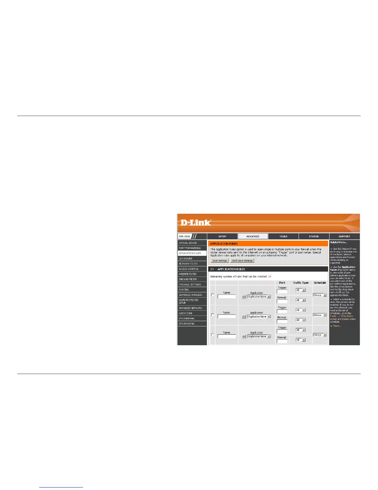 The DIR-860L provides some predened applications in the table on the bottom of the web page. Select the application you