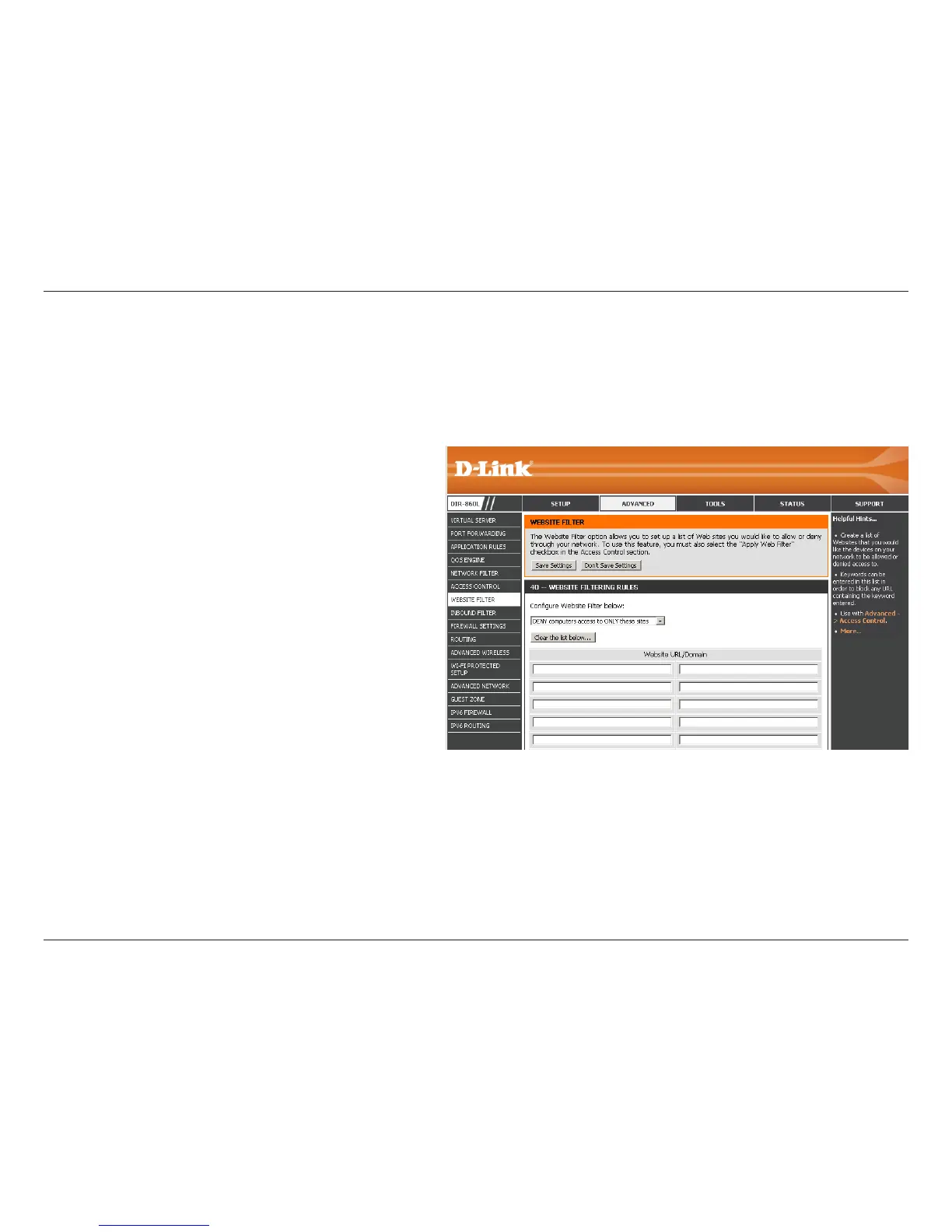 To use this feature select to Allow or Deny, enter the domain or website and click Save Settings. You must also select Apply