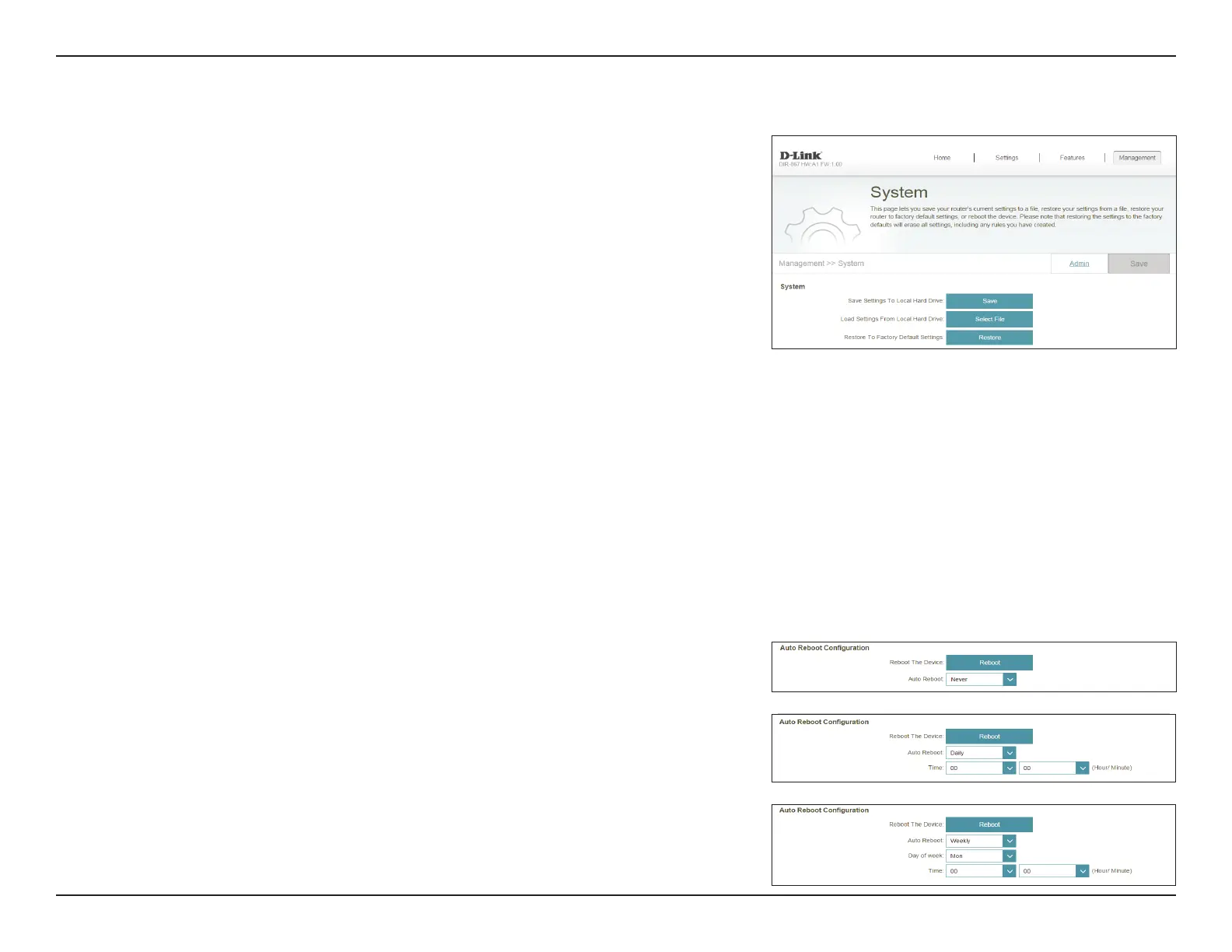 Auto Reboot: You may set the DIR-867 to automatically reboot at a set time. The options