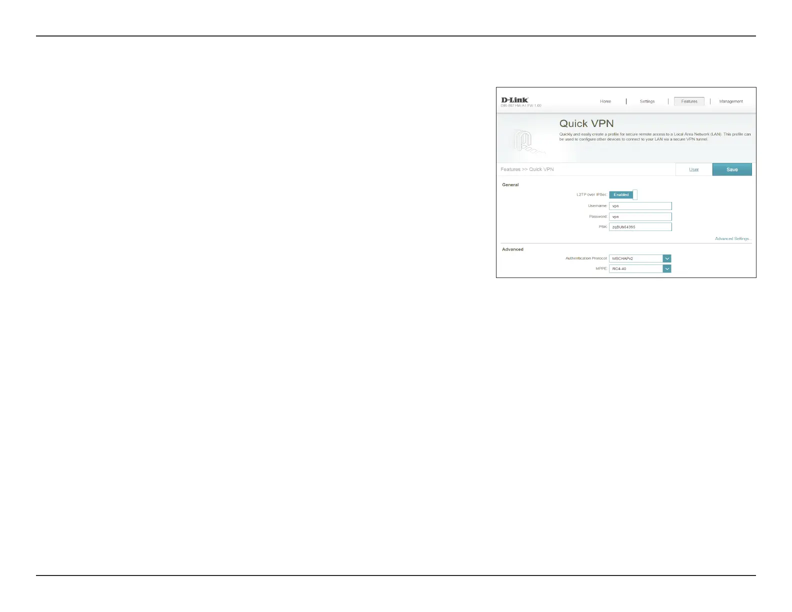 L2TP over IPSec: Enable or disable the Quick VPN server.