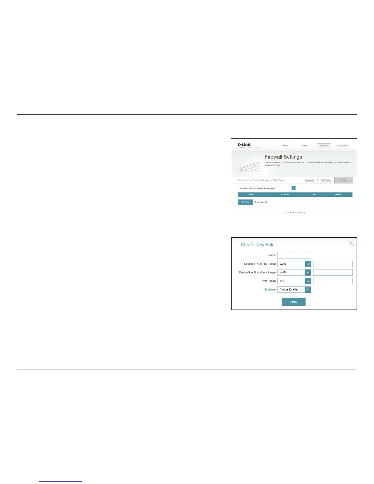 the Firewall Settings page click IPv4 Rules. To congure IPv6 rules, from the Firewall