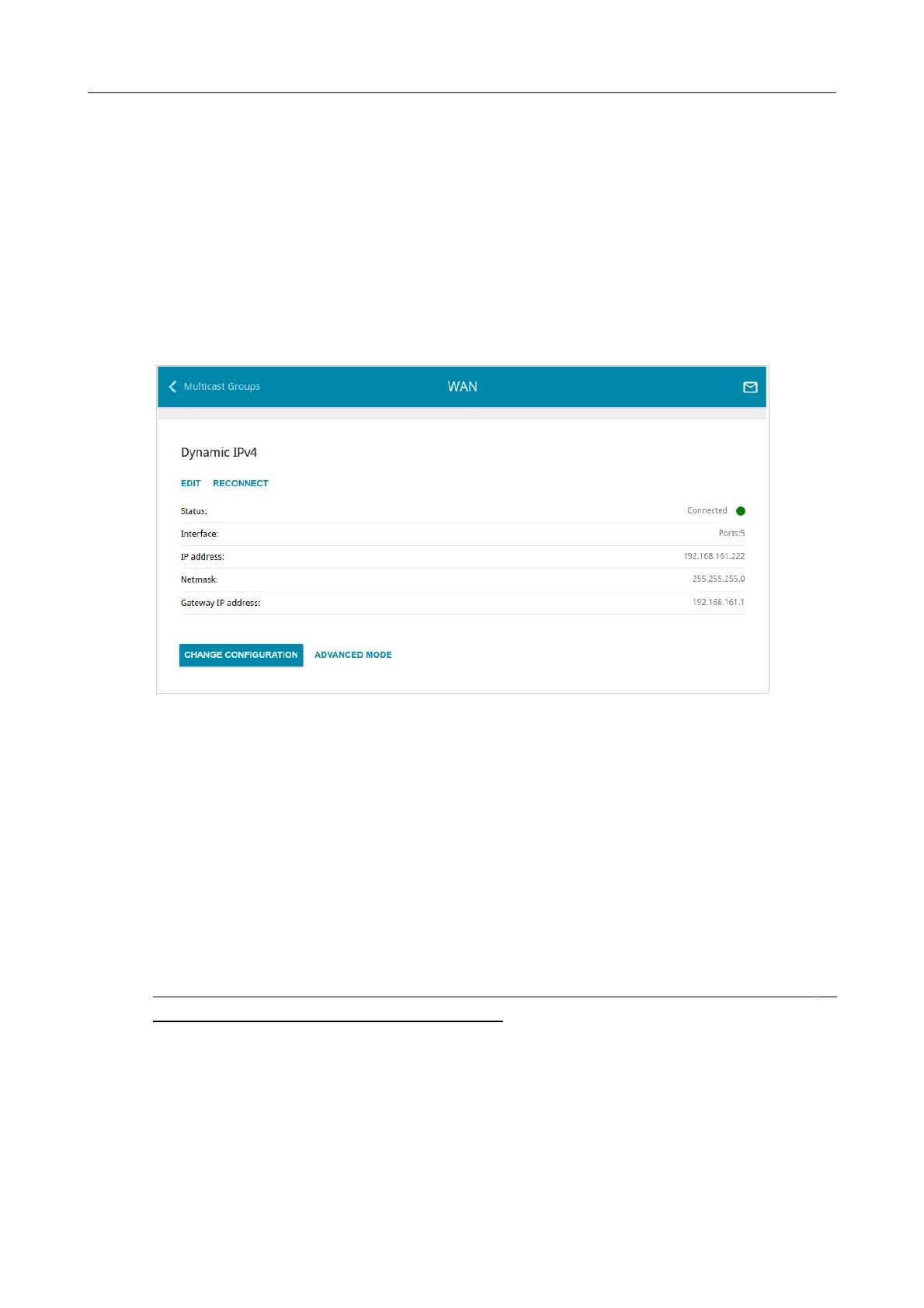 By default, a Dynamic IPv4 connection is configured in the system. It is assigned to the WAN