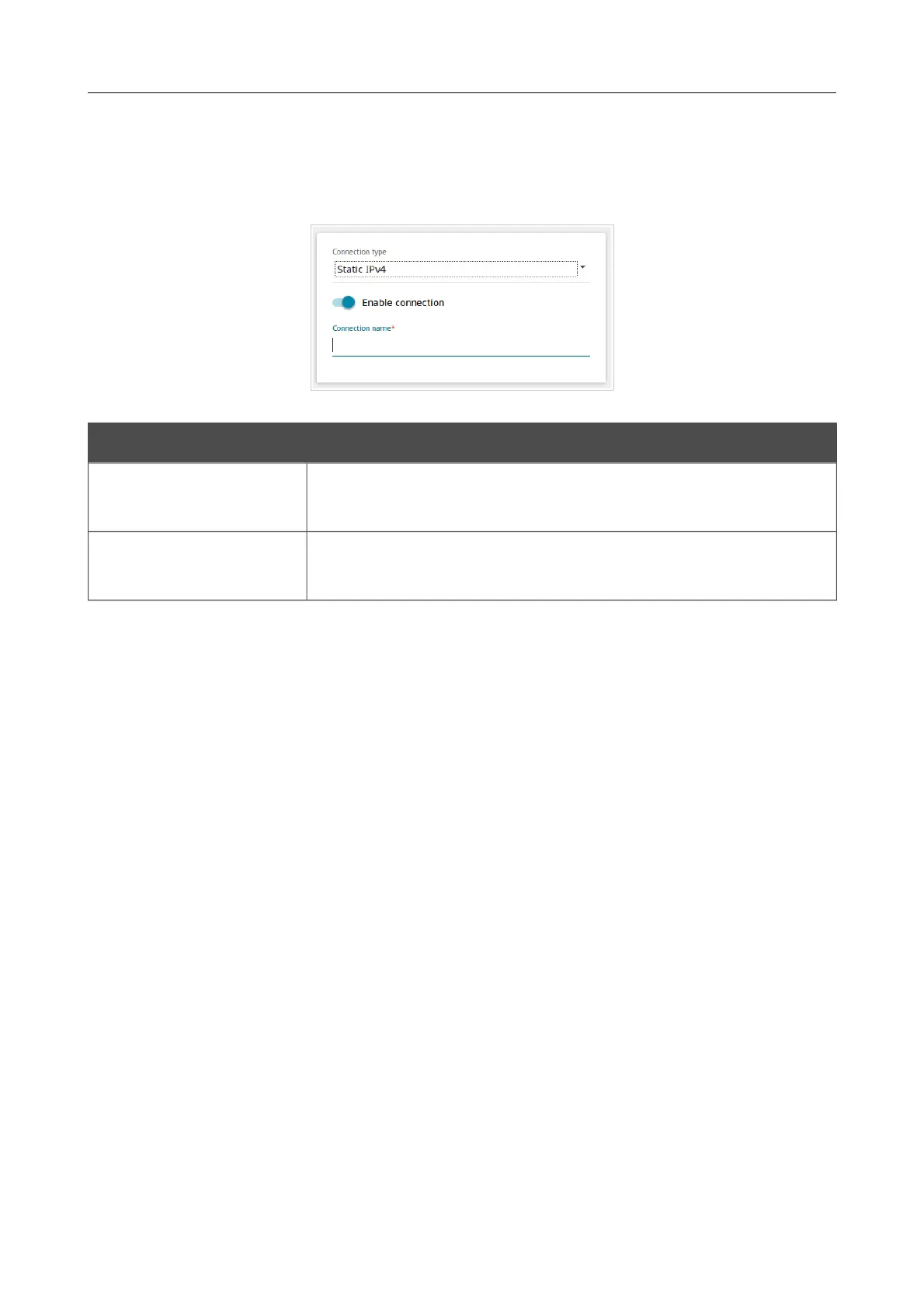 Figure 52. The page for creating a new Static IPv4 connection. Selecting a connection type.