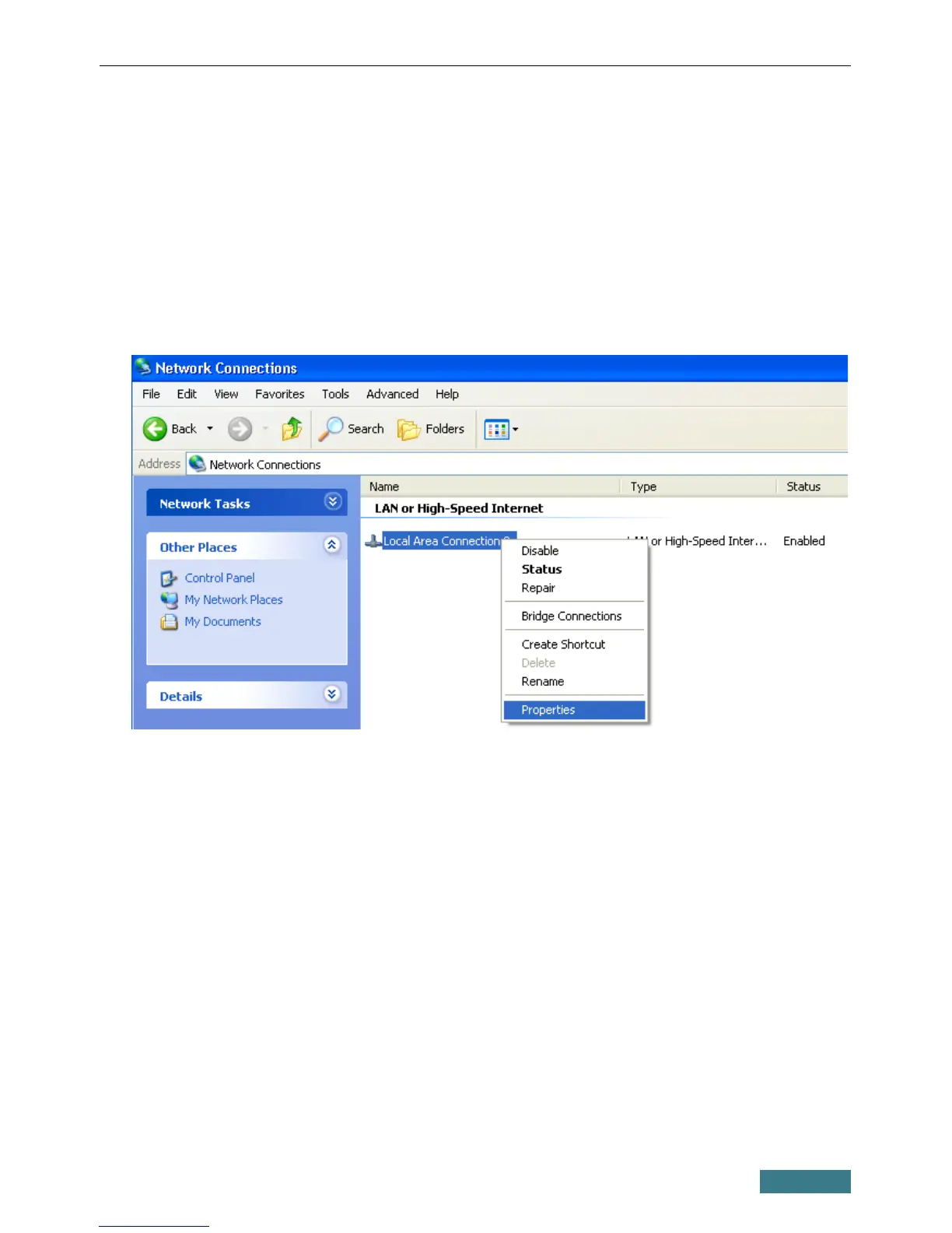 Area Connection icon and select the Properties line in the menu