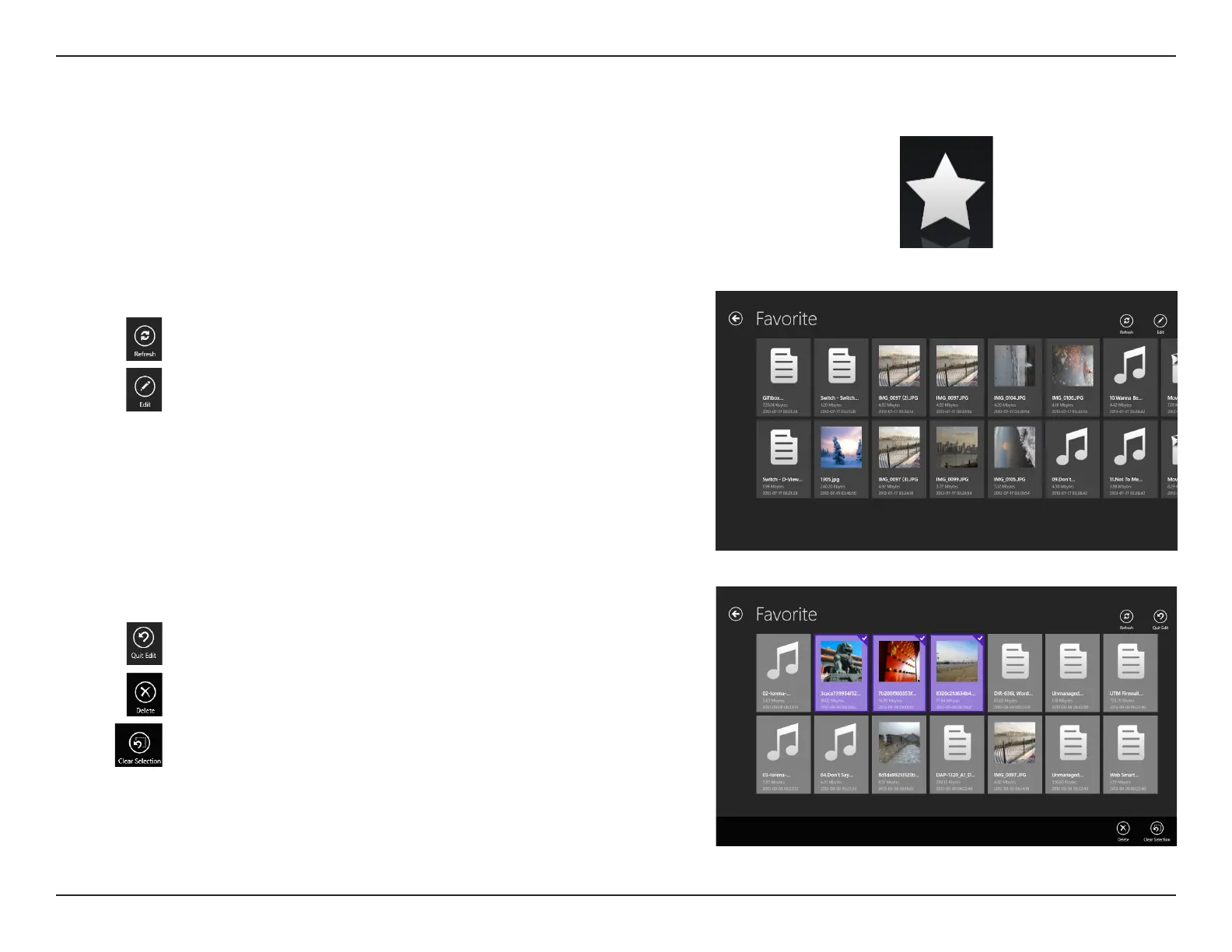 Tap Edit to to add le to Favorite or delete the le. (See list below.)