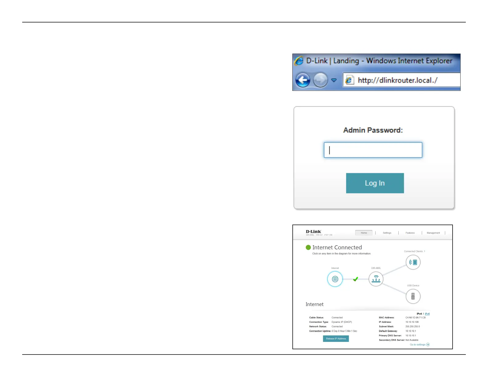 http://dlinkrouter.local./ or the IP address of the router (http://192.168.0.1).