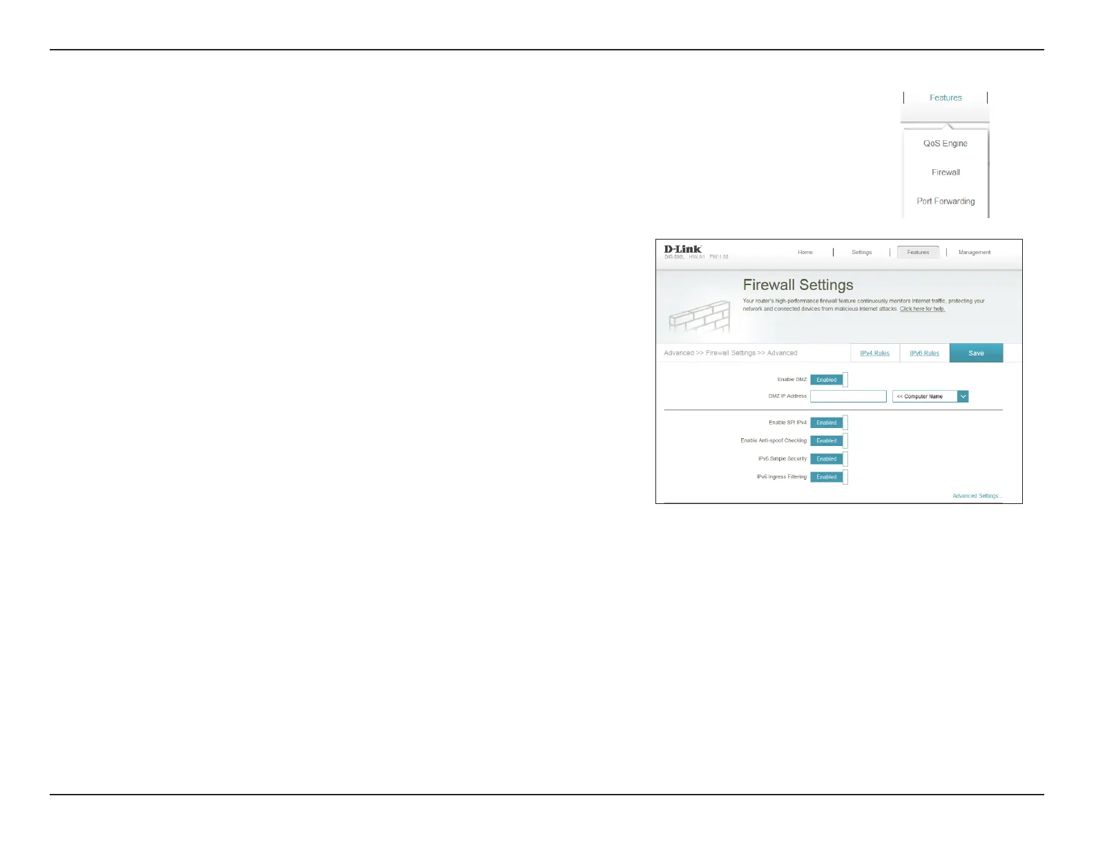 A rewall protects your network from malicious attacks over the Internet. The DIR-880L oers a high-performance rewall