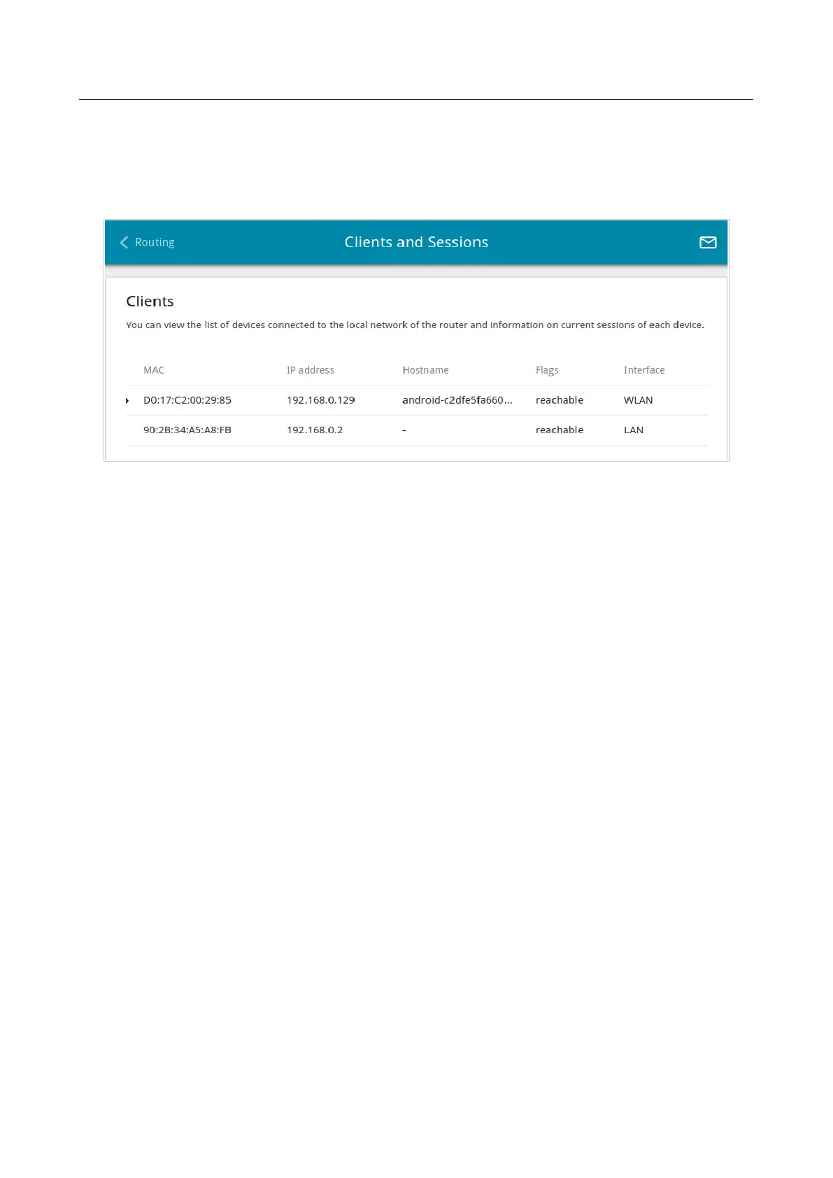On the Statistics / Clients and Sessions page, you can view the list of devices connected to