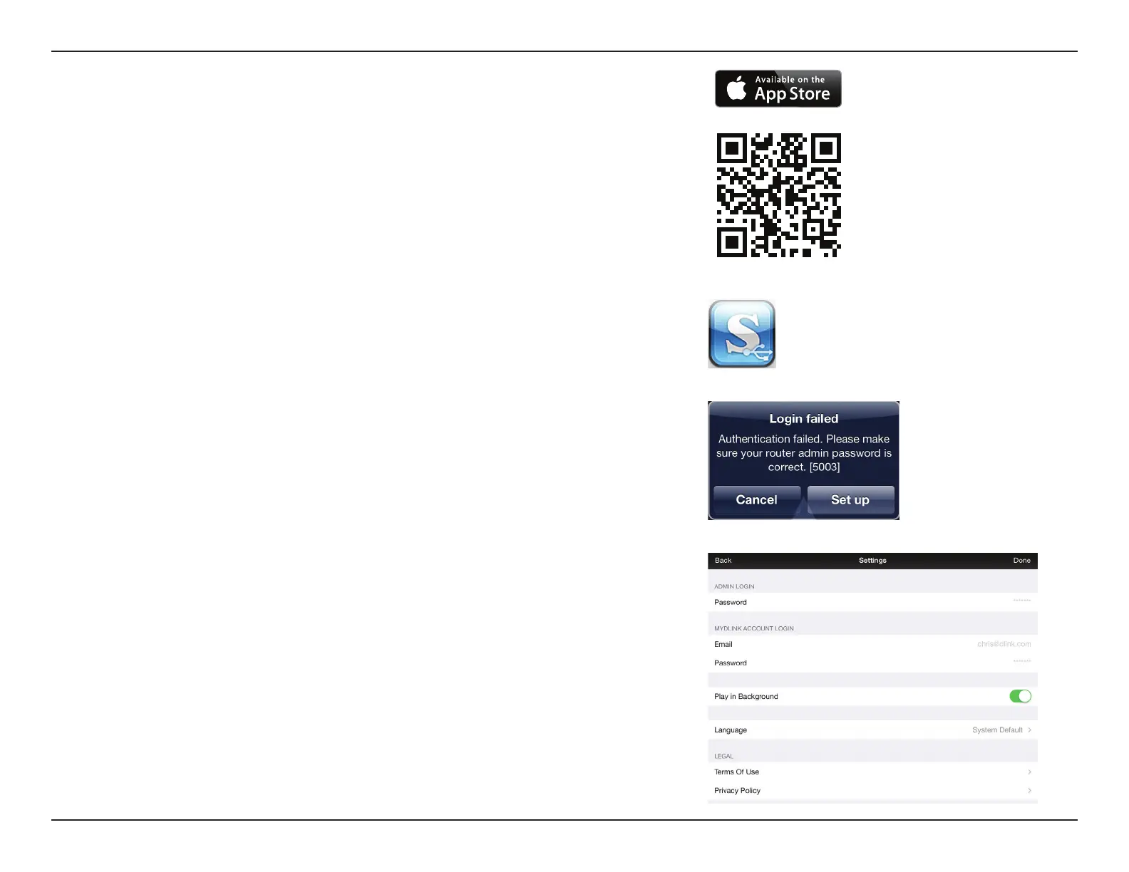 Tap Set up to go to Settings and enter the Admin password and your mydlink Account Login