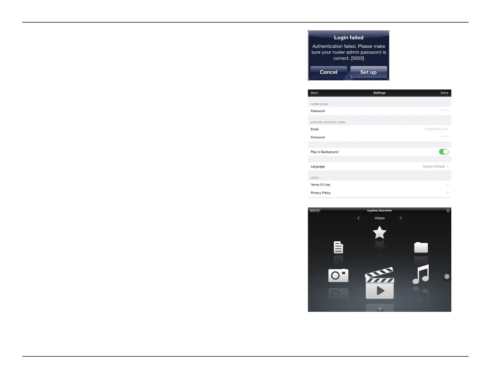 You can now use the mydlink SharePort app interface to stream media and access les stored