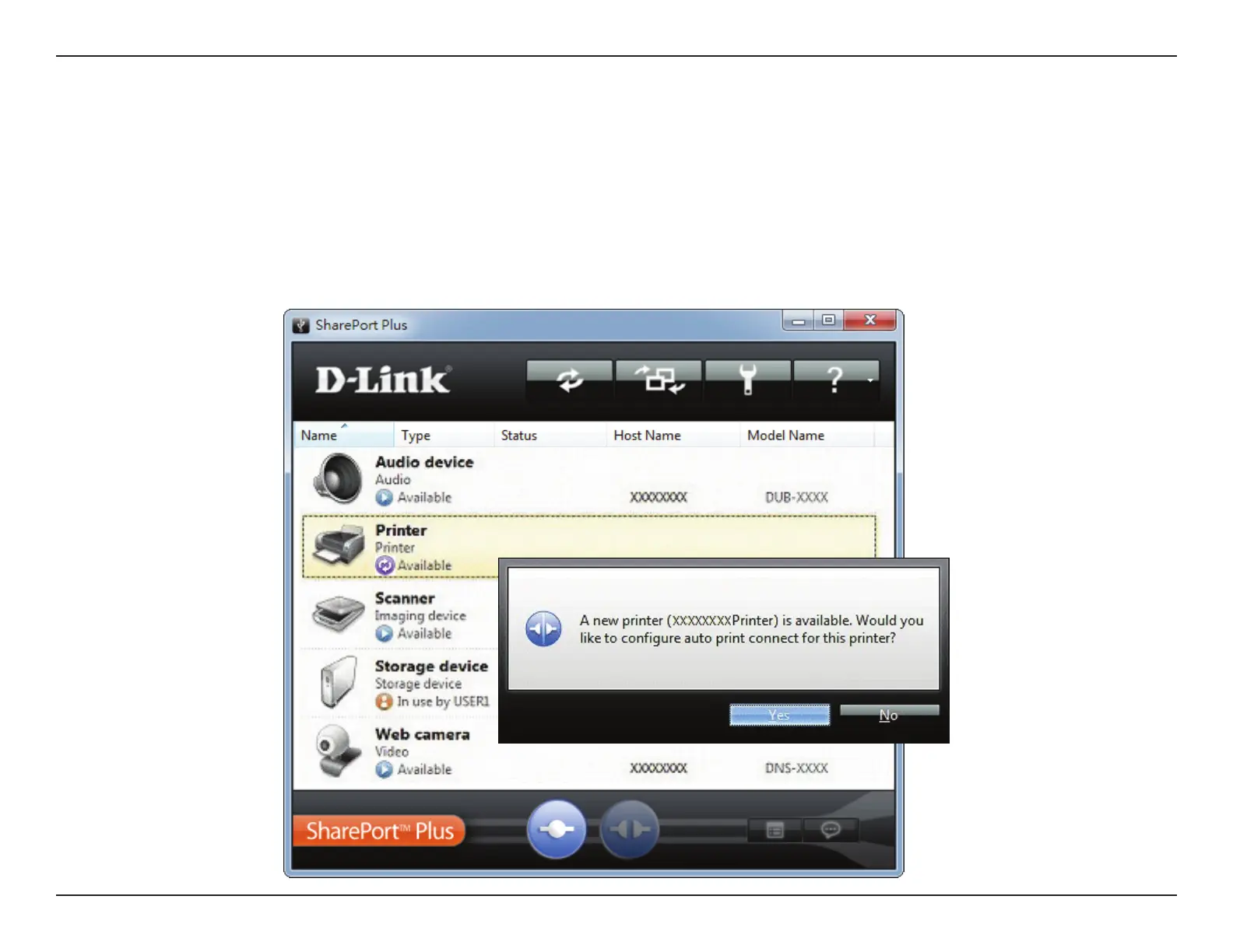 Upon successful installation, the SharePort Plus Utility will launch. Your PC will automatically attempt to connect to your D-Link SharePort Enabled