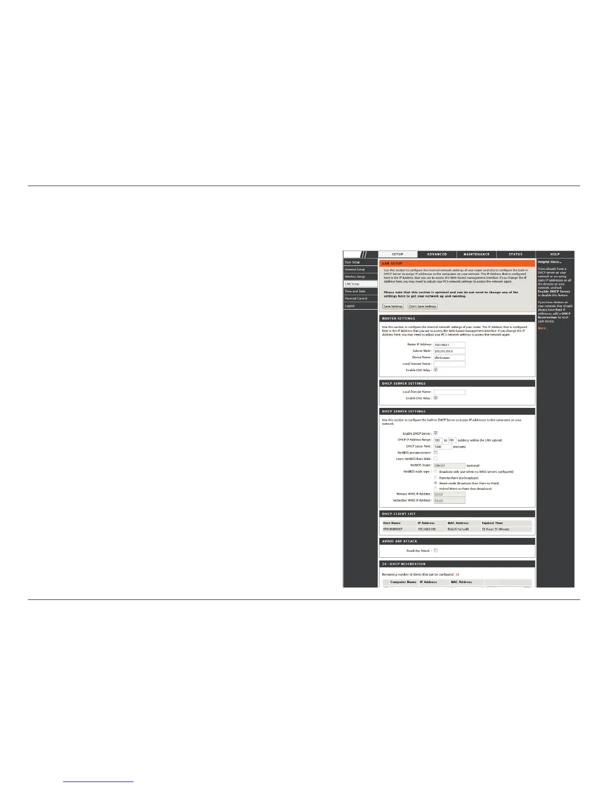 This section will allow you to change the local network settings of the router and to congure the DHCP settings.